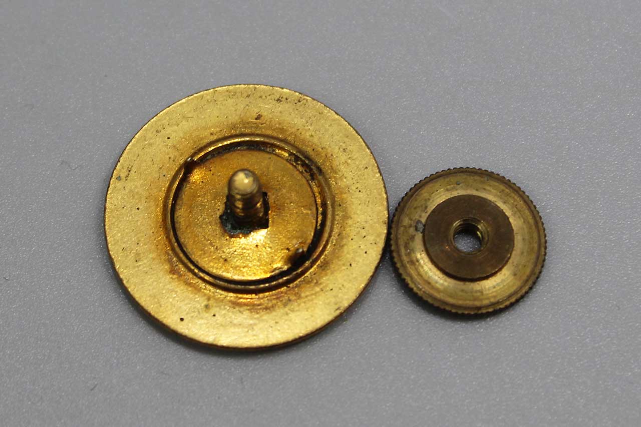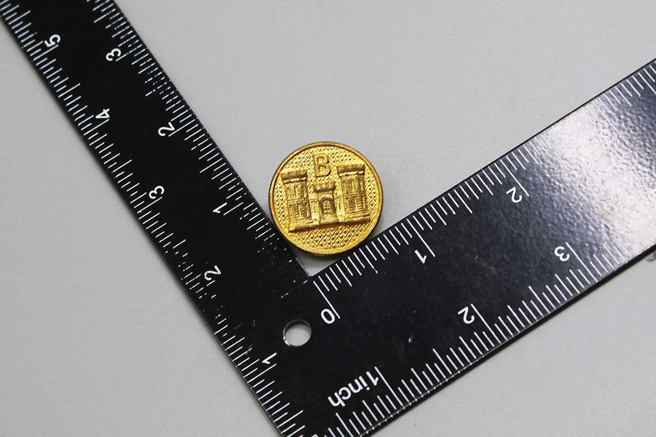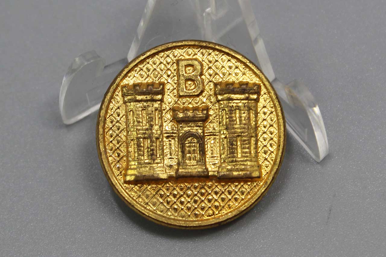 United States Corps of Engineers B Company Collar Disc. Screw post back. Pre-WW2, estimated date range of 1926-1937. Worn condition.