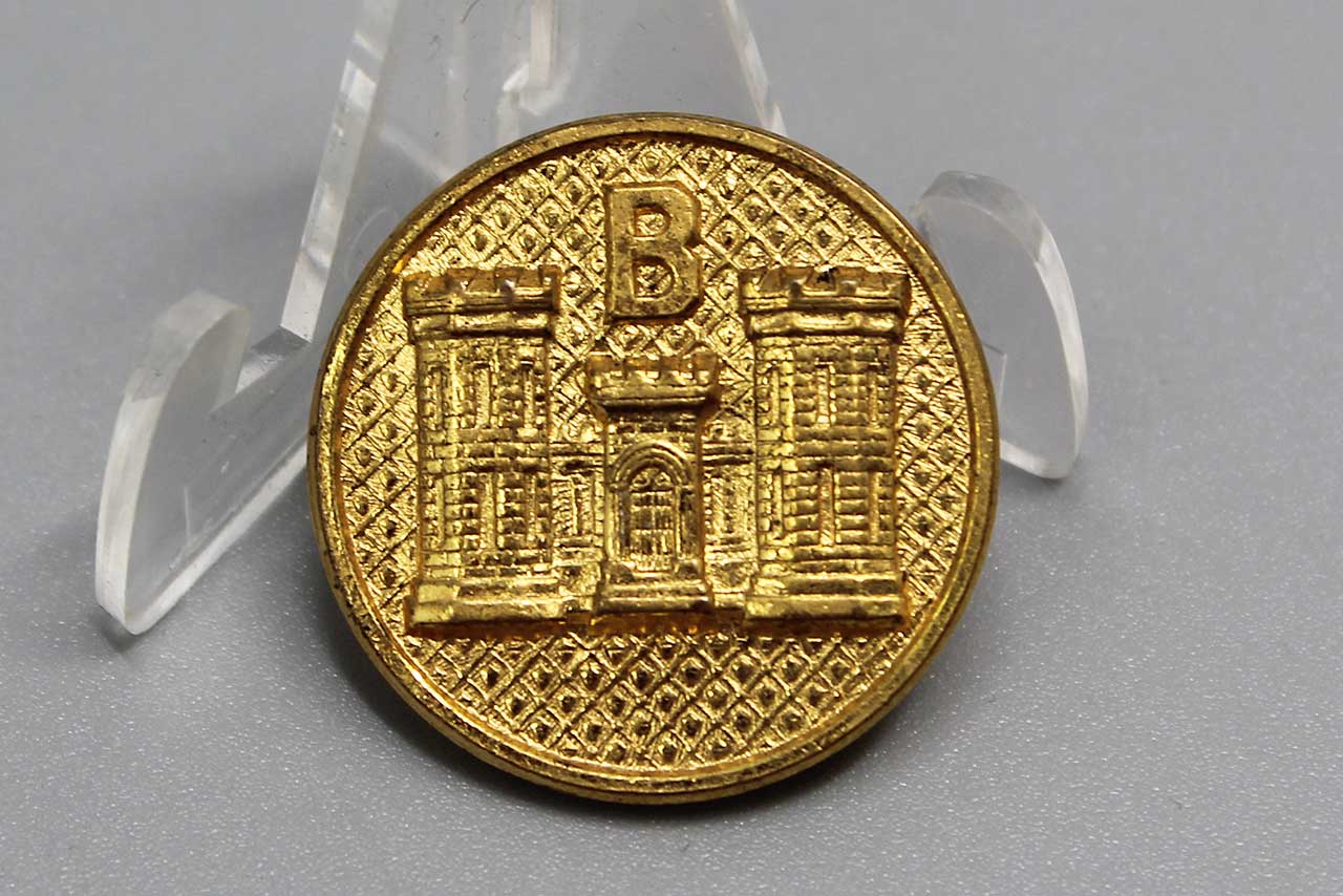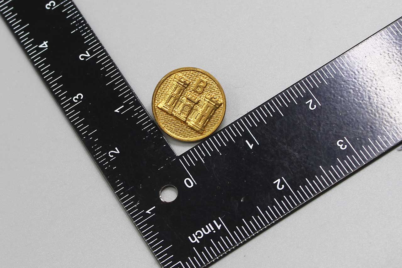 United States Corps of Engineers B Company Collar Disc. Screw post back. Pre-WW2, estimated date range of 1926-1937. Worn condition.