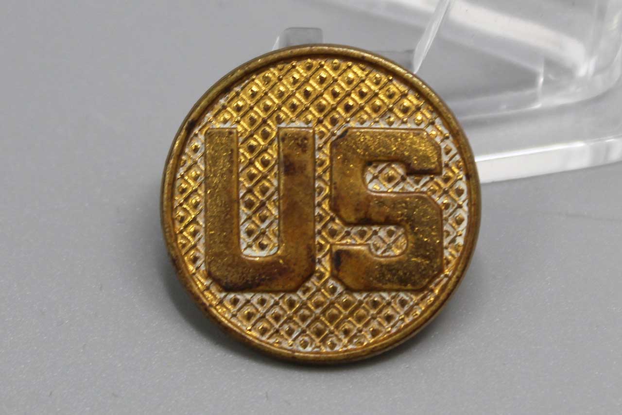 United States Enlisted “U.S.” Collar Disc. Screw post back. Pre-WW2, estimated date range of 1926-1937. Worn condition.