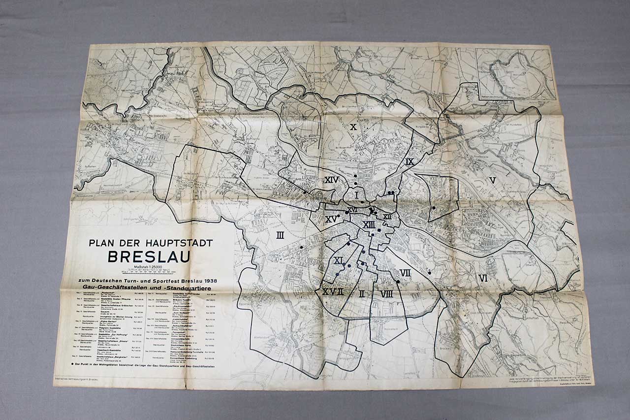 WW2 German Gymnastics and Sports Festival Map 1938. Size approximately 32 inches x 23 inches unfolded. Worn condition.
