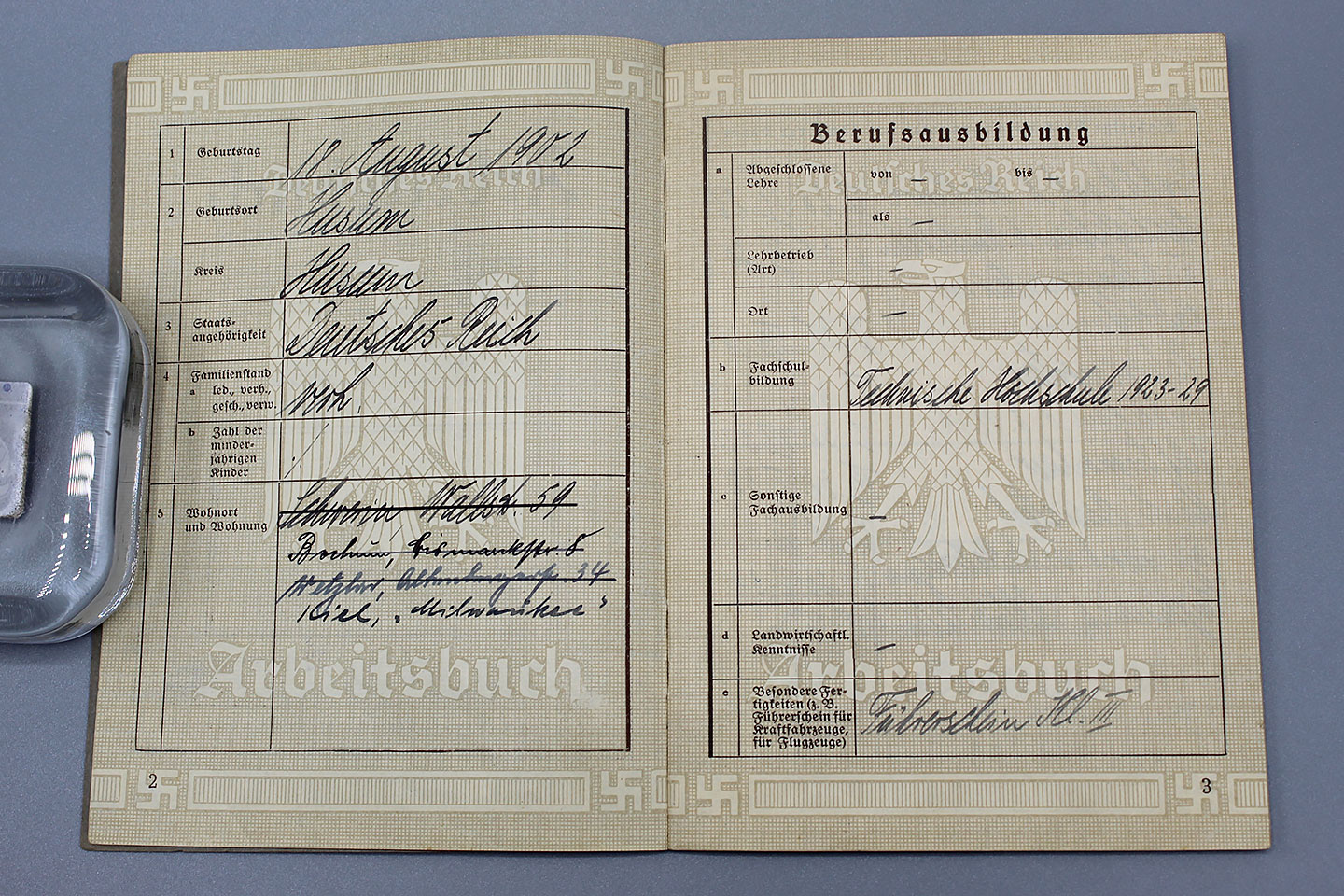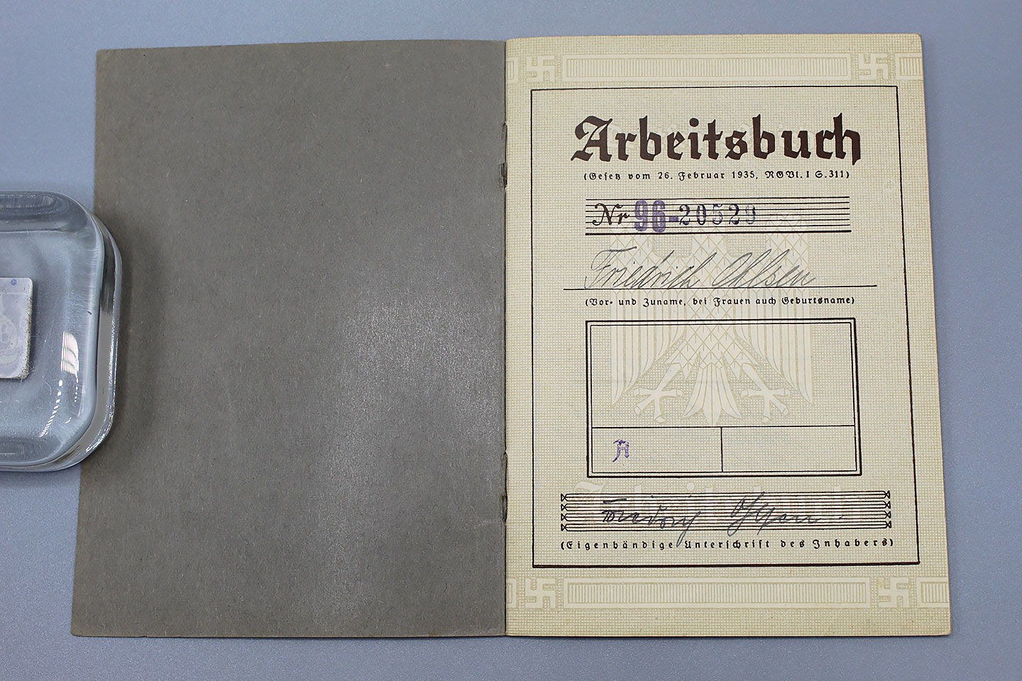 WW2 German Workers Book. Deutsches Reich Arbeitsbuch. First Type work book.