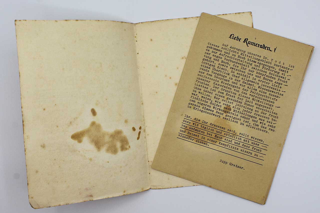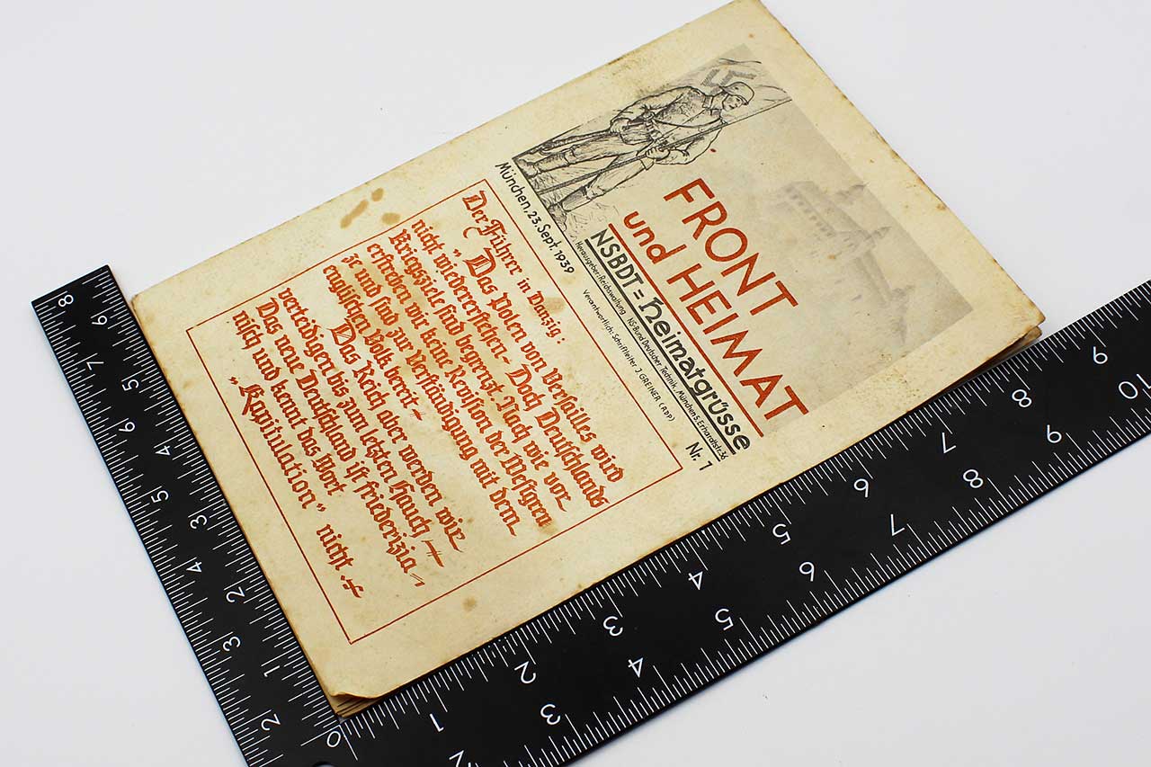 WW2 German 1939 Front and Home Book. September 1939. Size approximately 8 1/2 inches x 6 inches. Heavily worn and stained condition.