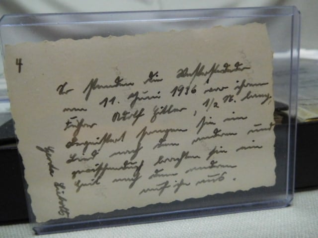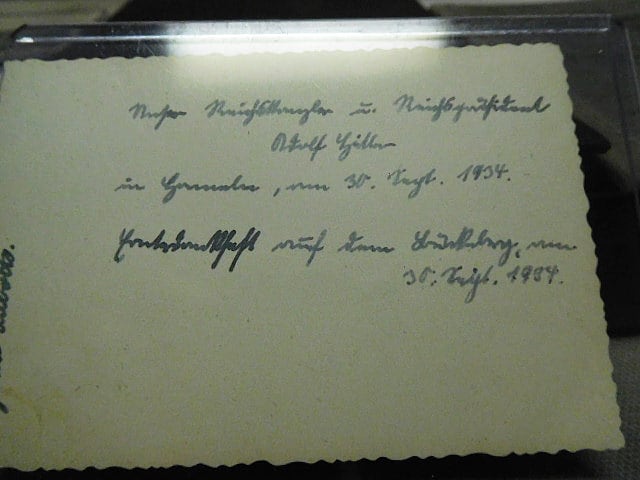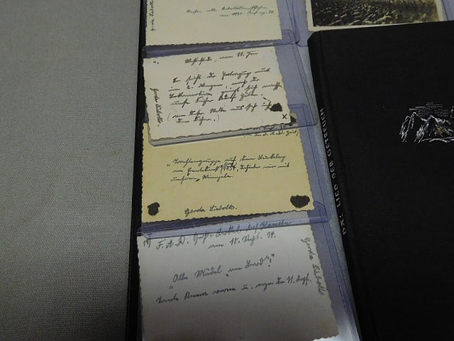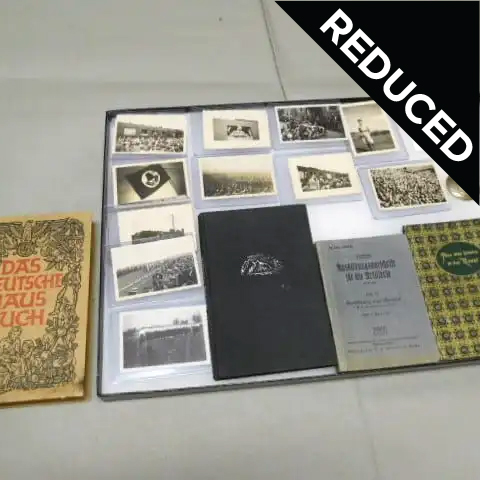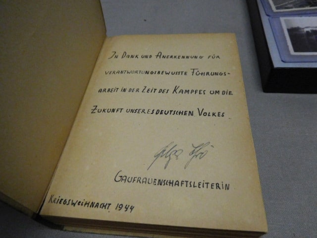 WW2 German Woman’s RAD grouping to one individual. The group has several small pictures with writing on the back, also, several pictures of Hitler either in a car or on a train. Set also included serial numbered badge. Books are named to the same individual. Grouping to one female RAD member with books, pictures, and badge.