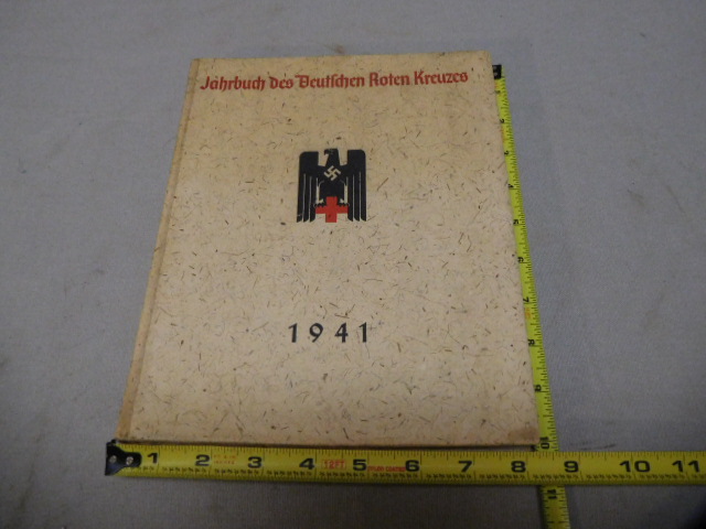 WW2 German book Jahrbuch des Deutschen Roten Kreuzes 1941. Yearbook of the German Red Cross 1941. Size approximately 8 1/4 inches X 10 1/8 inches. Worn and used condition.