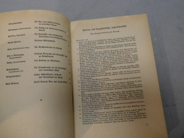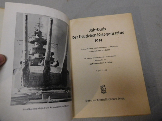 WW2 German book Jahrbuch der Deutschen Kriegsmarine 1941. Yearbook of the German Navy. Size approximately 6 3/4 inches X 9 3/4 inches. Worn and used condition.