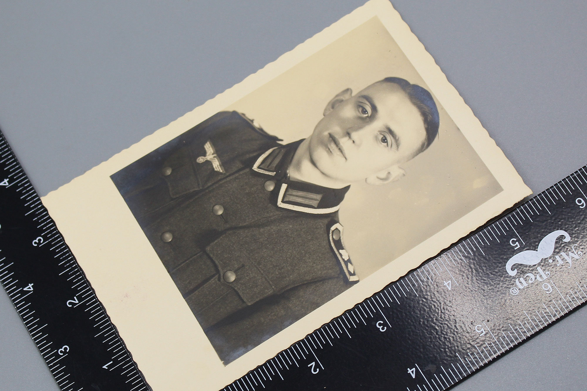 WW2 German Army Soldier Portrait Postcard. Size approximately 5 1/2 inches x 3 5/8 inches. Worn condition postcard.