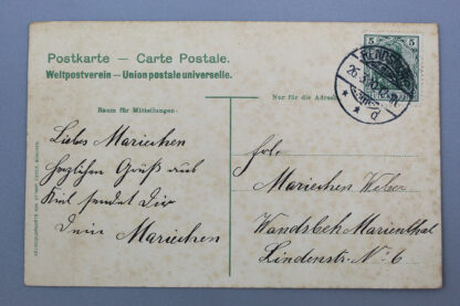 Imperial German SMS Preussen postcard. Stamped and mailed postcard. The ship was commissioned in 1905. Worn and used condition.