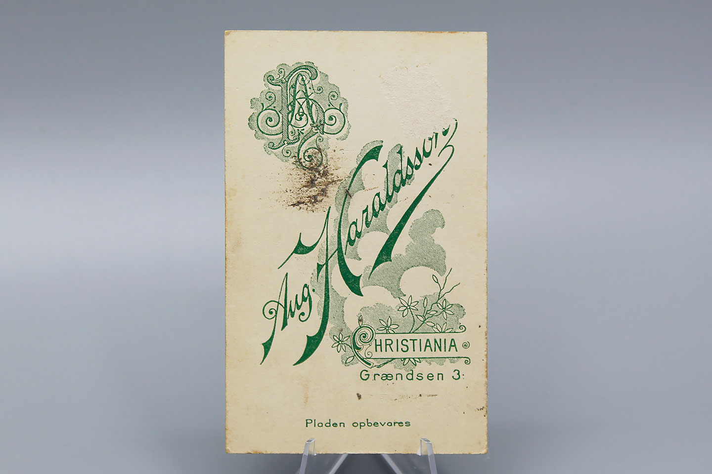 The cabinet card was a style of photograph which was widely used for photographic portraiture after 1870. It consisted of a thin photograph mounted on a card. It’s included extensive logos and information on the reverse side of the card to advertise the photographer’s services.