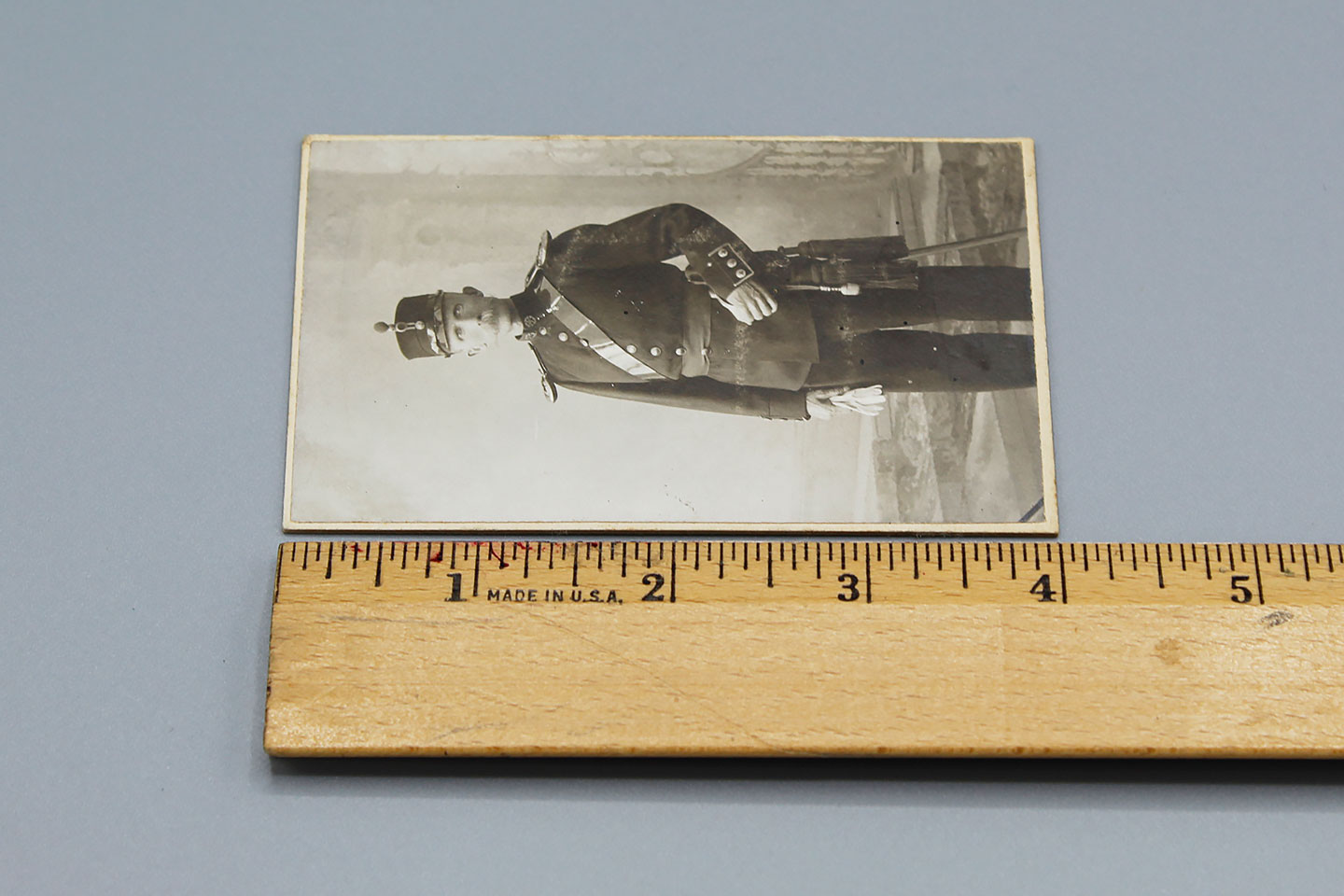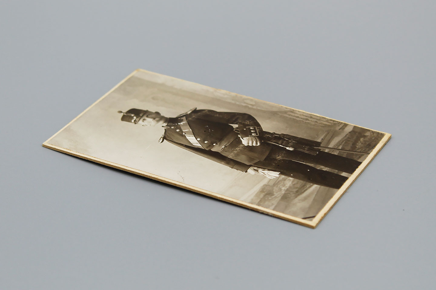 Imperial German soldier cabinet card. Soldier in uniform w/sword. Size approximately 2 1/2 inches X 4 inches.