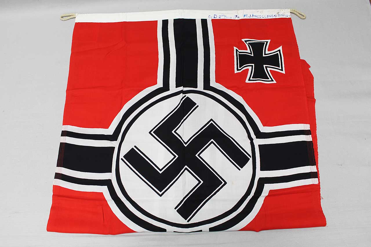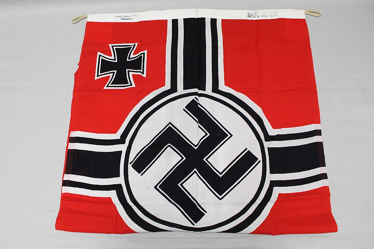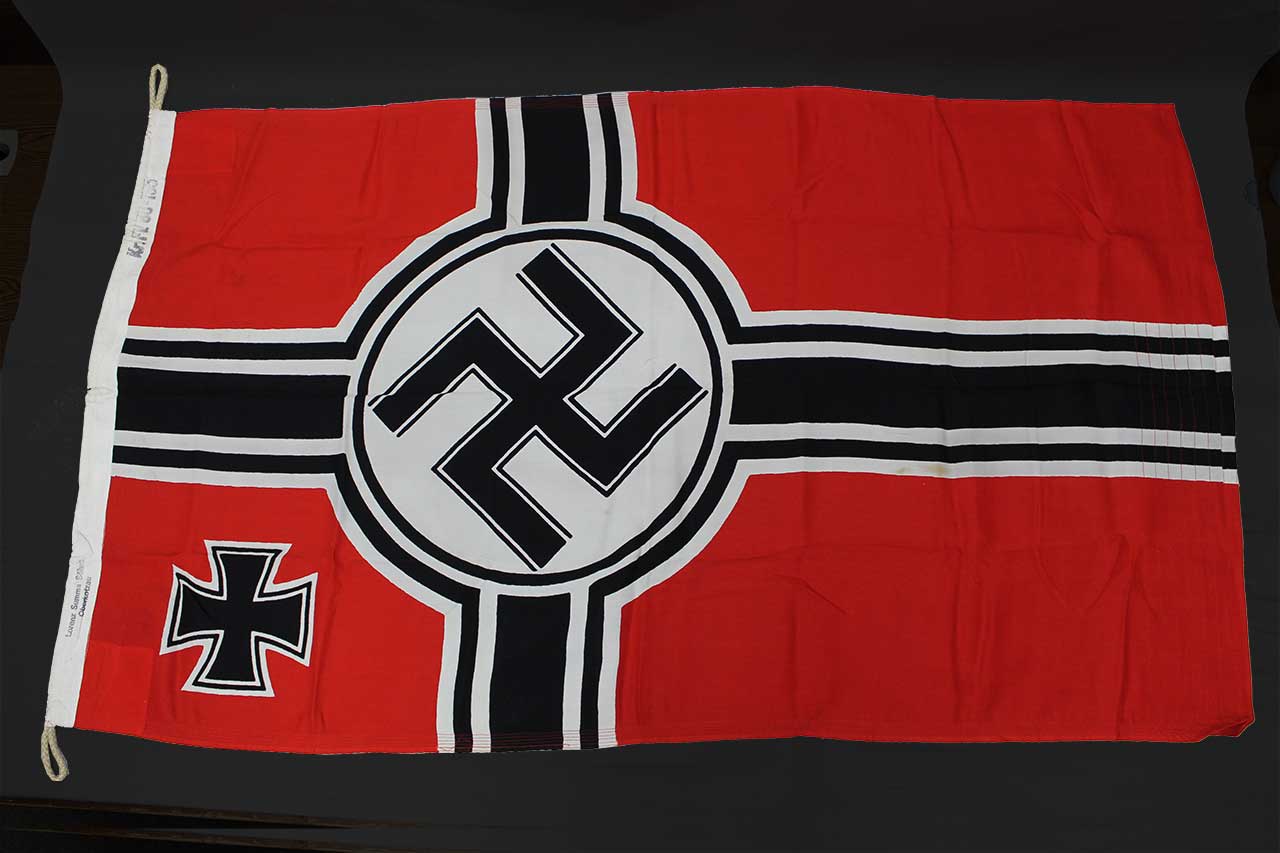 Additional Notes: The WW2 German National War Flag, also known as the Reichskriegsflagge, was used by the German armed forces during the WW2 era. This flag featured a red background with a white circle in the center, containing a black swaz. It was officially adopted in 1935 as part of the Nuremberg Laws and remained in use until the end of WW2 in 1945.