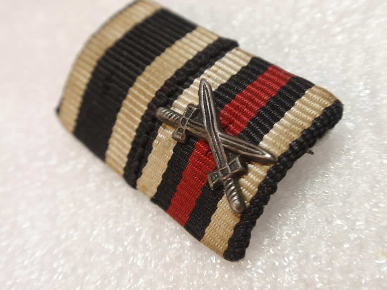 WW1/WW2 two place ribbon bar. Ribbons for WW1 iron cross and Hindenburg honor cross with swords.