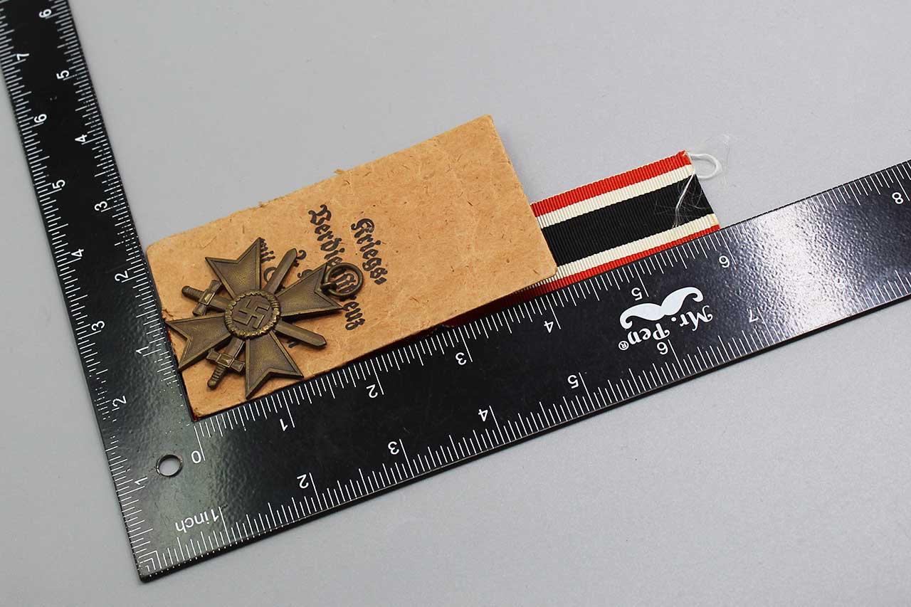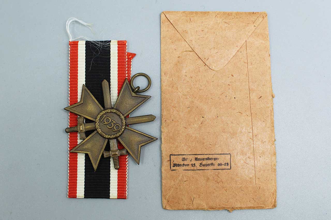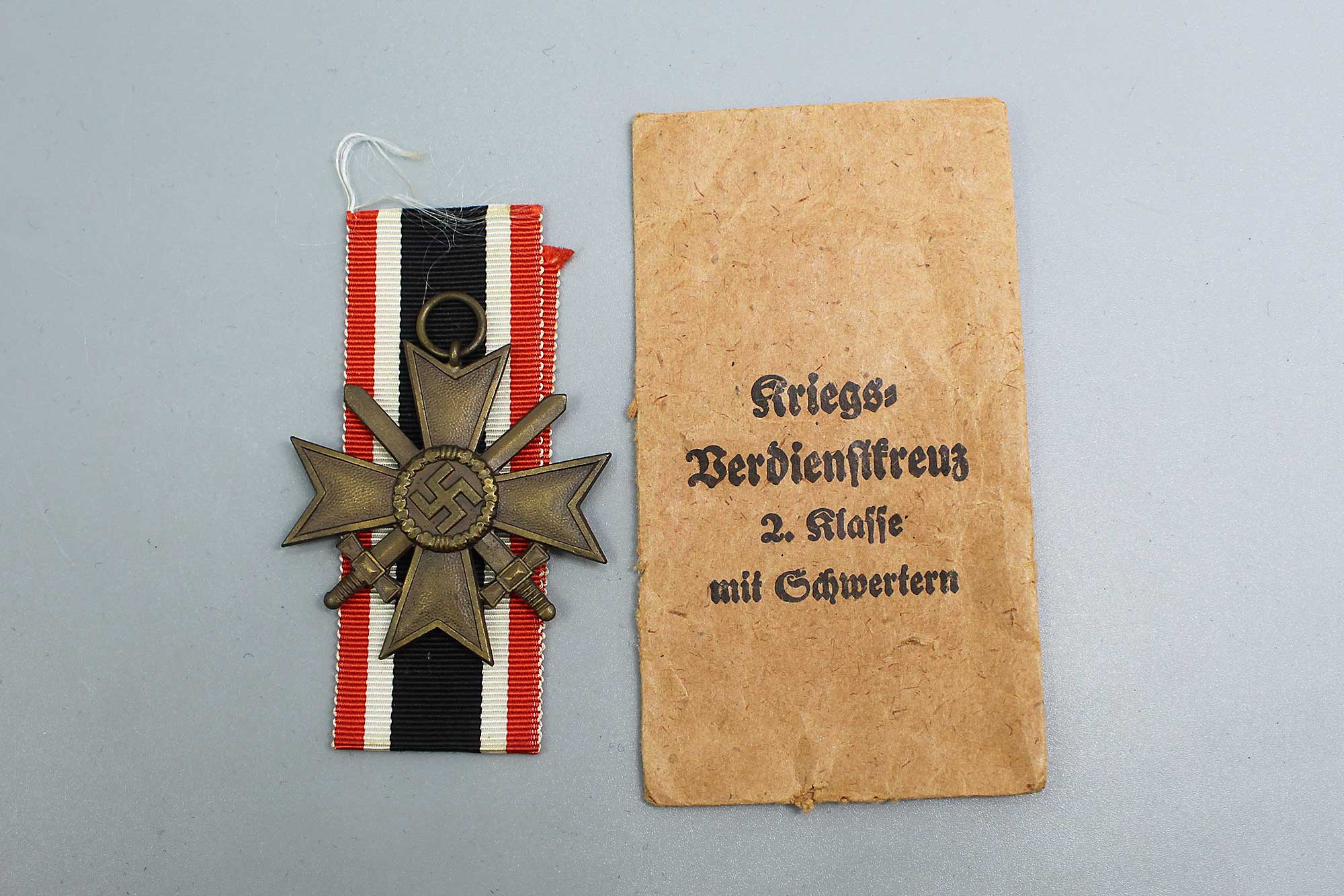 WW2 German War Merit Cross (KVK) 2nd class with swords with award paper packet. Worn condition.