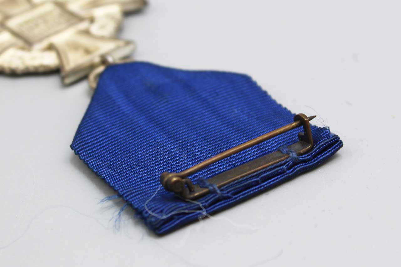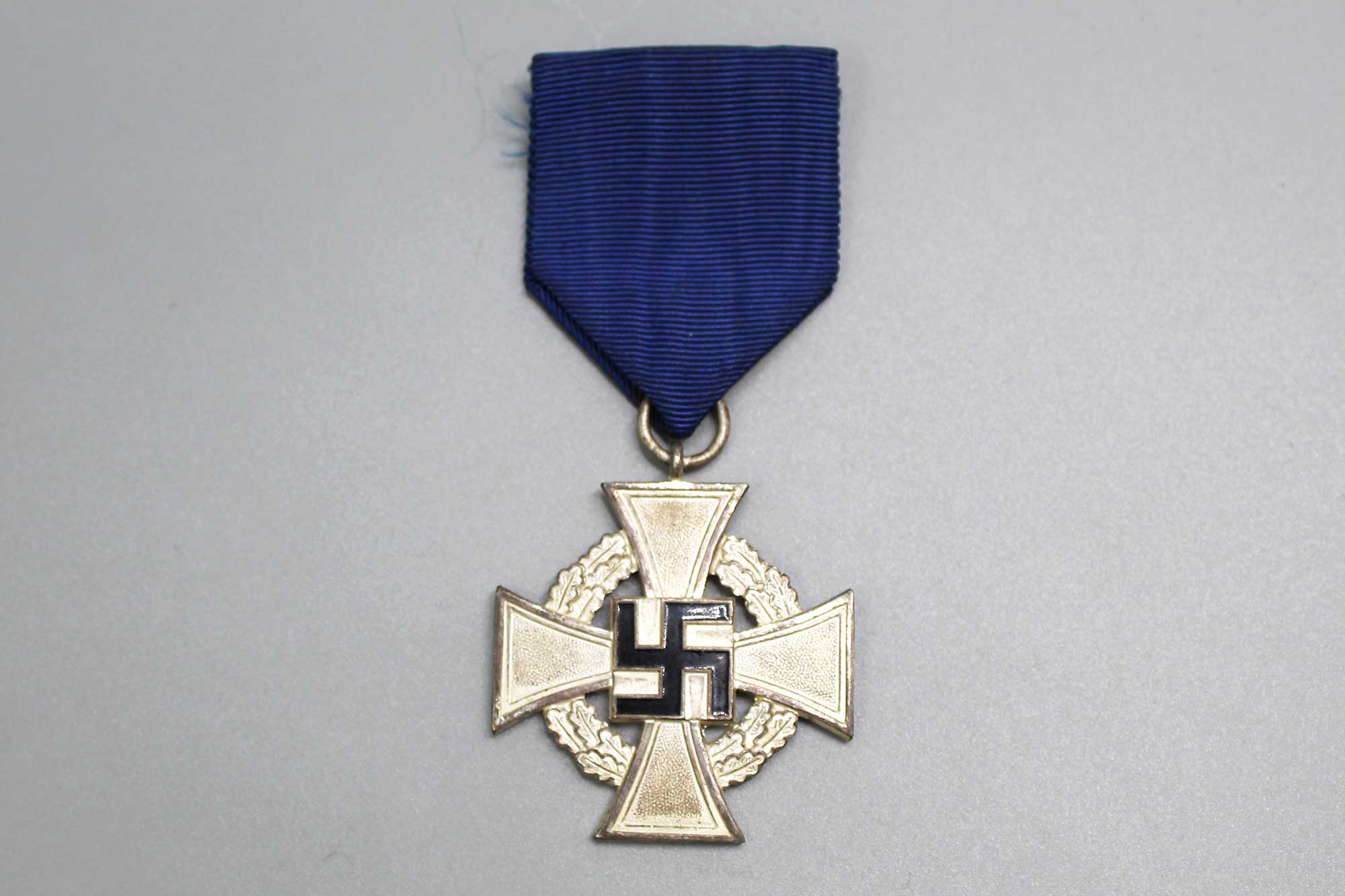 WW2 German 25 year Faithful Service Cross. Second class award. Wording on back of cross “Fur treue Dienste” (For Loyal Service). Blue ribbon with pin. Nice condition.