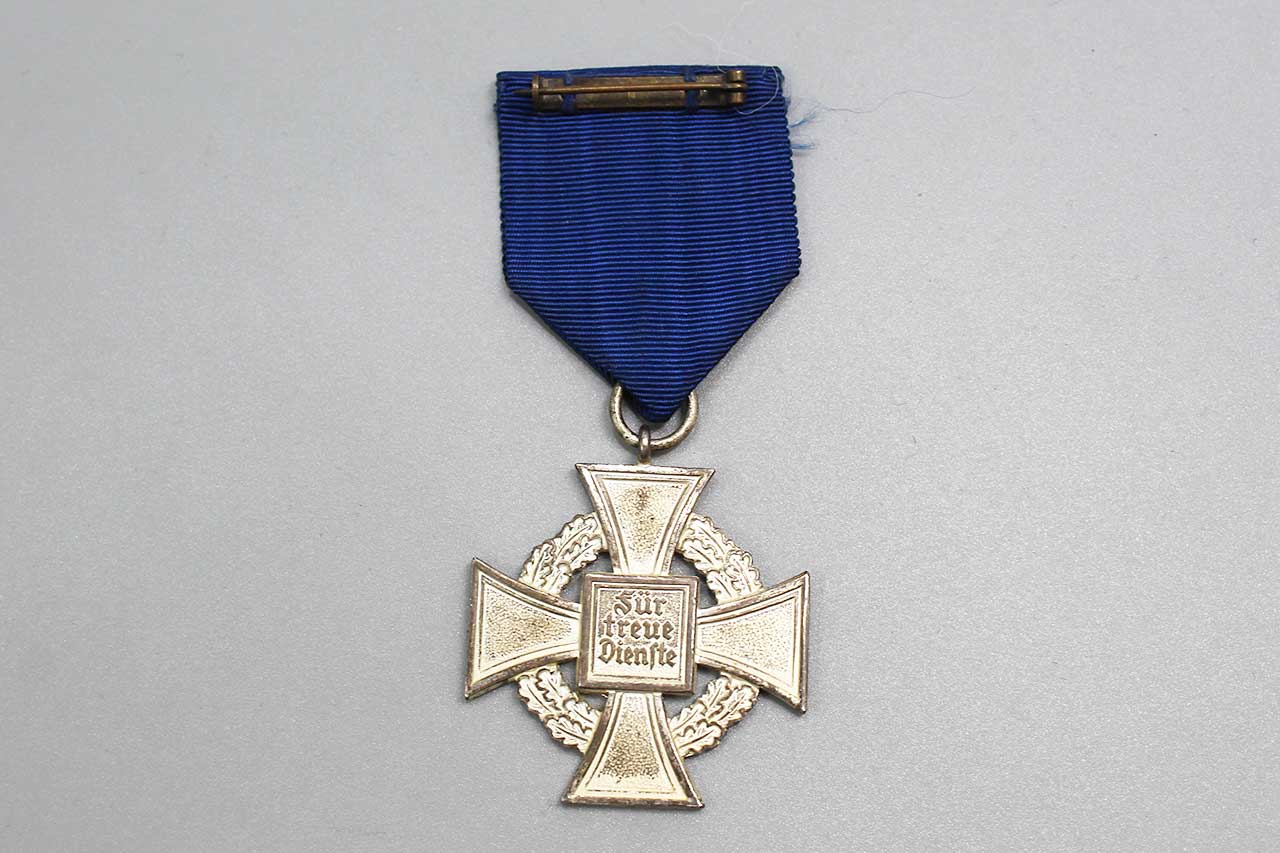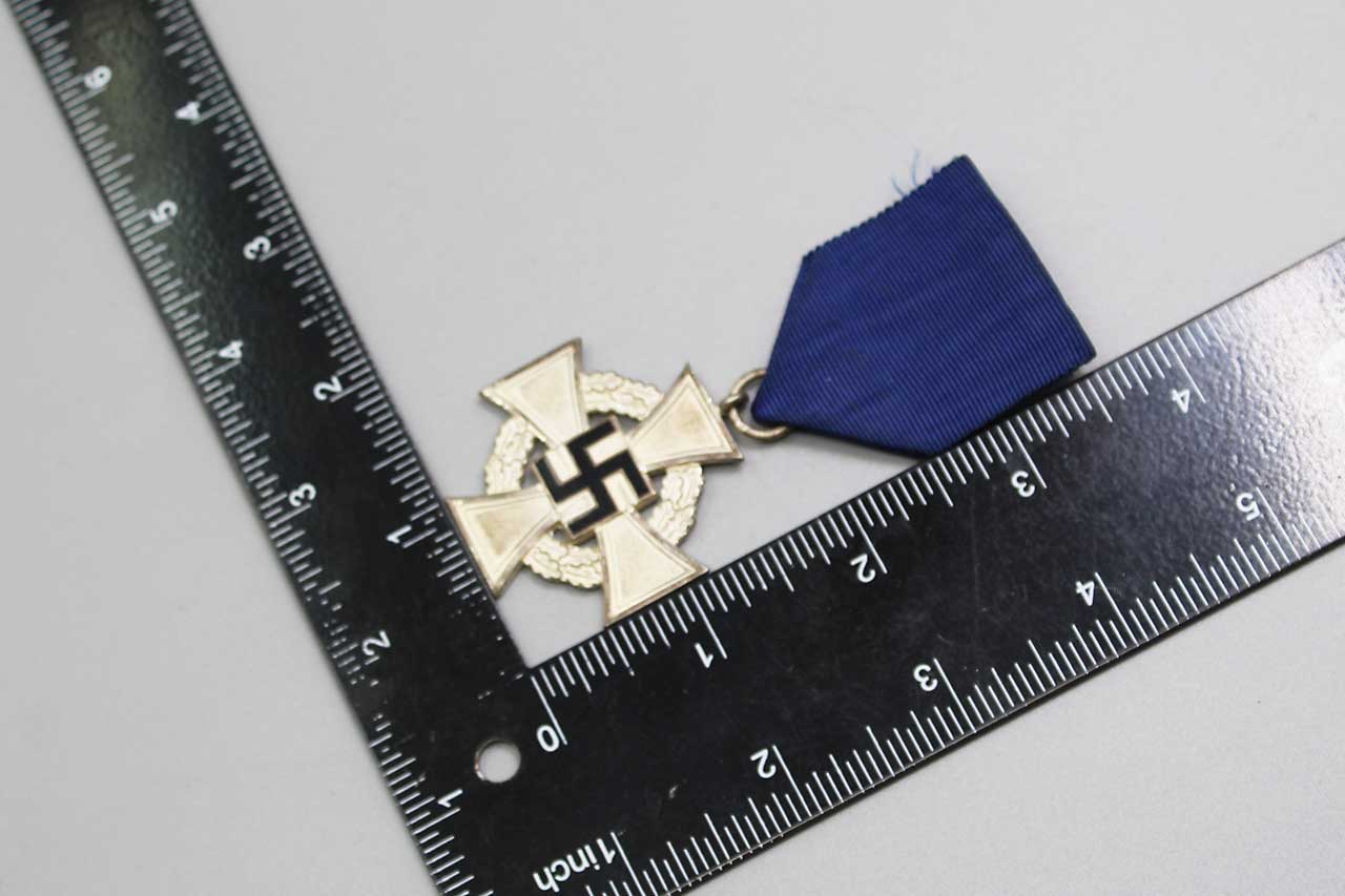 Additional Notes: The WW2 German 25 Year Faithful Service Cross, officially known as the Treudienst-Ehrenzeichen, was a medal awarded to civil servants and public employees in WW2 Germany who had completed 25 years of continuous service. Instituted in January of 1938, this medal was part of a tiered system recognizing long-term dedication to the state.