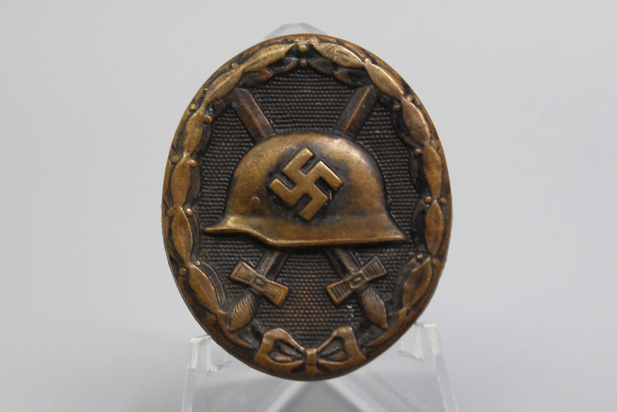 Additional Notes: The WW2 German Black Wound Badge was awarded to military personnel who were wounded once or twice by hostile action, including air raids. Instituted on September of 1939, it was part of a series of wound badges that also included silver and gold versions for more severe injuries. The ww2 German black wound badge was typically made from a die-stamped steel or tombak (brass-alloy) base, which was then black enamel painted and lacquered. It was worn on the lower left breast of the uniform, below other awards.