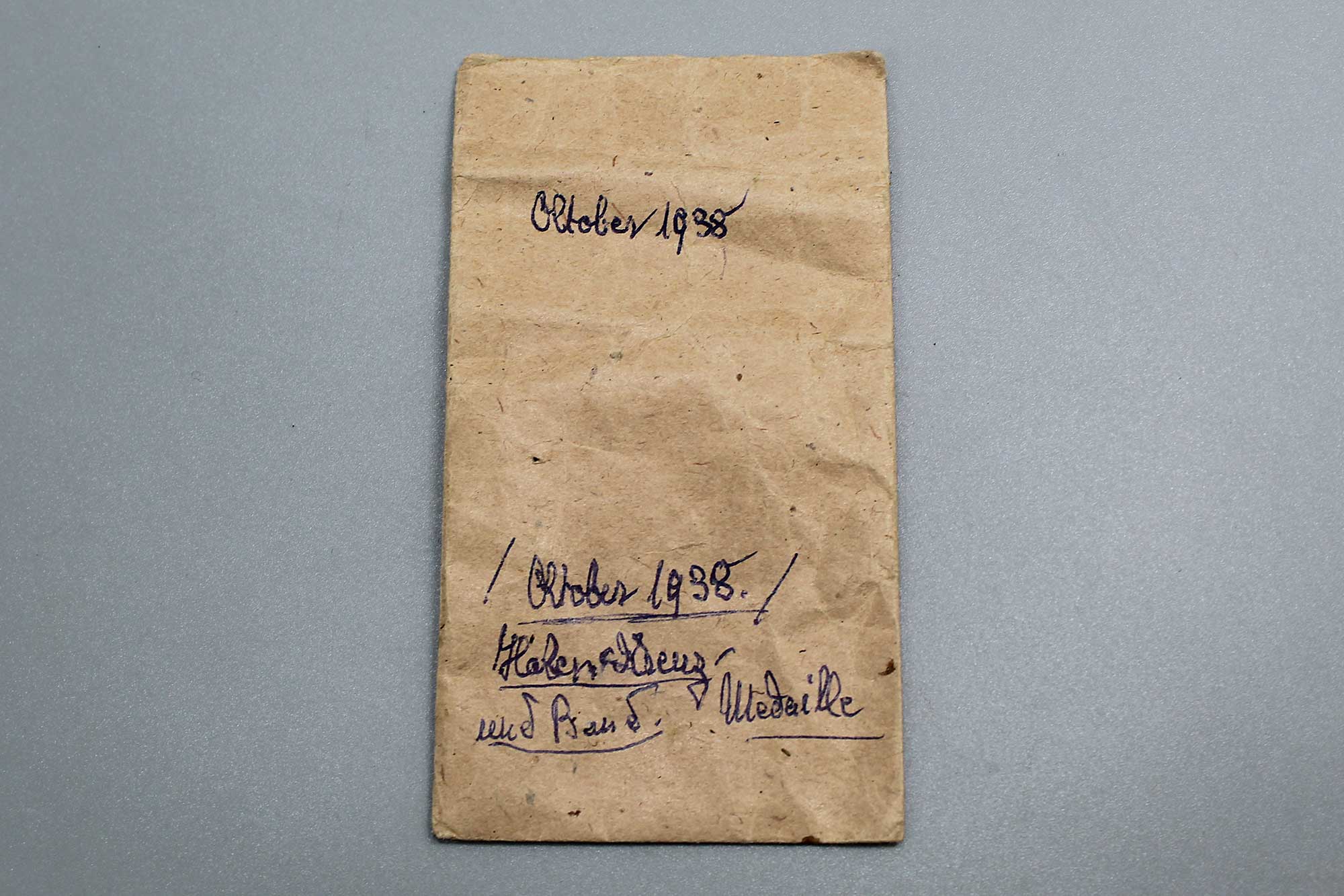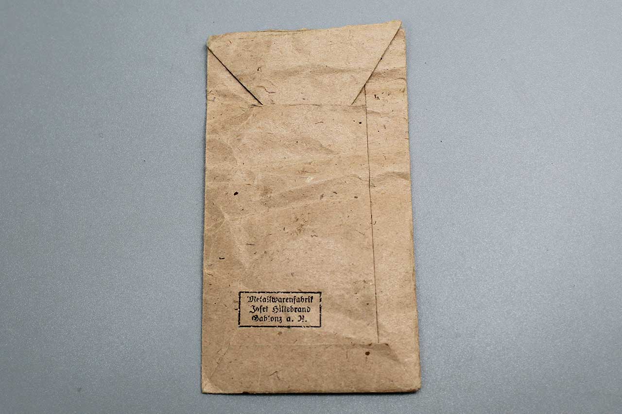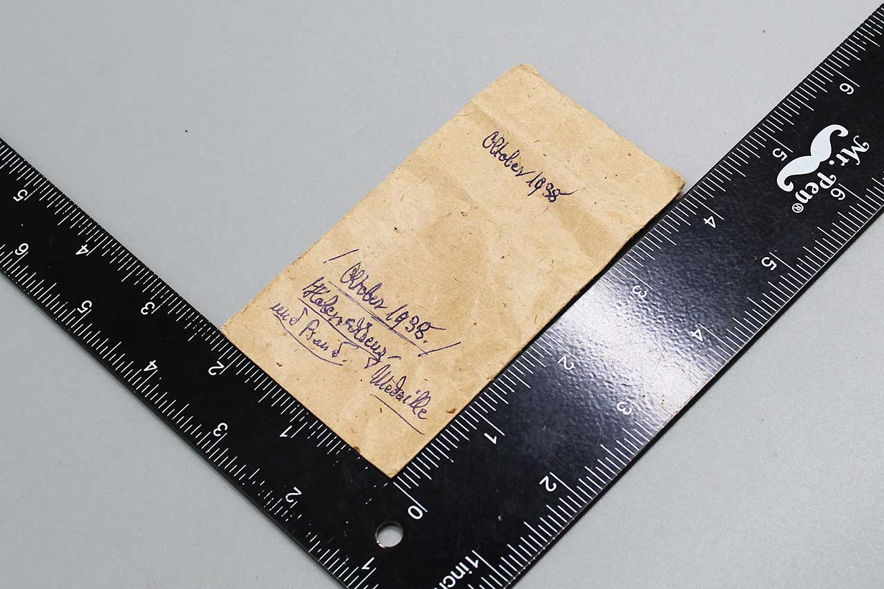 WW2 German Czech Conquest (Sudetenland) Paper Award Packet. Paper Packet only, no medal. Information written in ink for medal. Maker marked on back. Heavily worn condition.