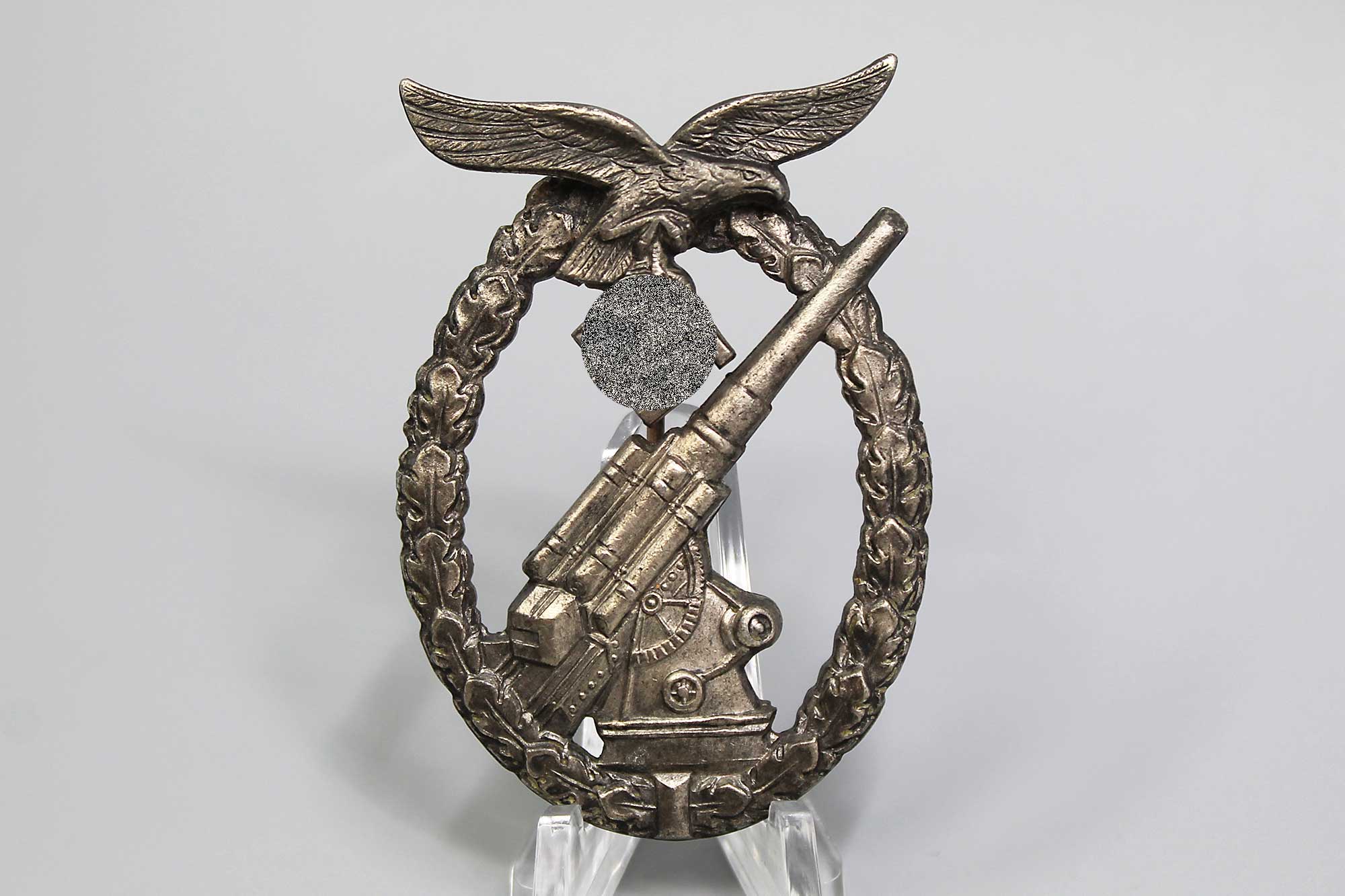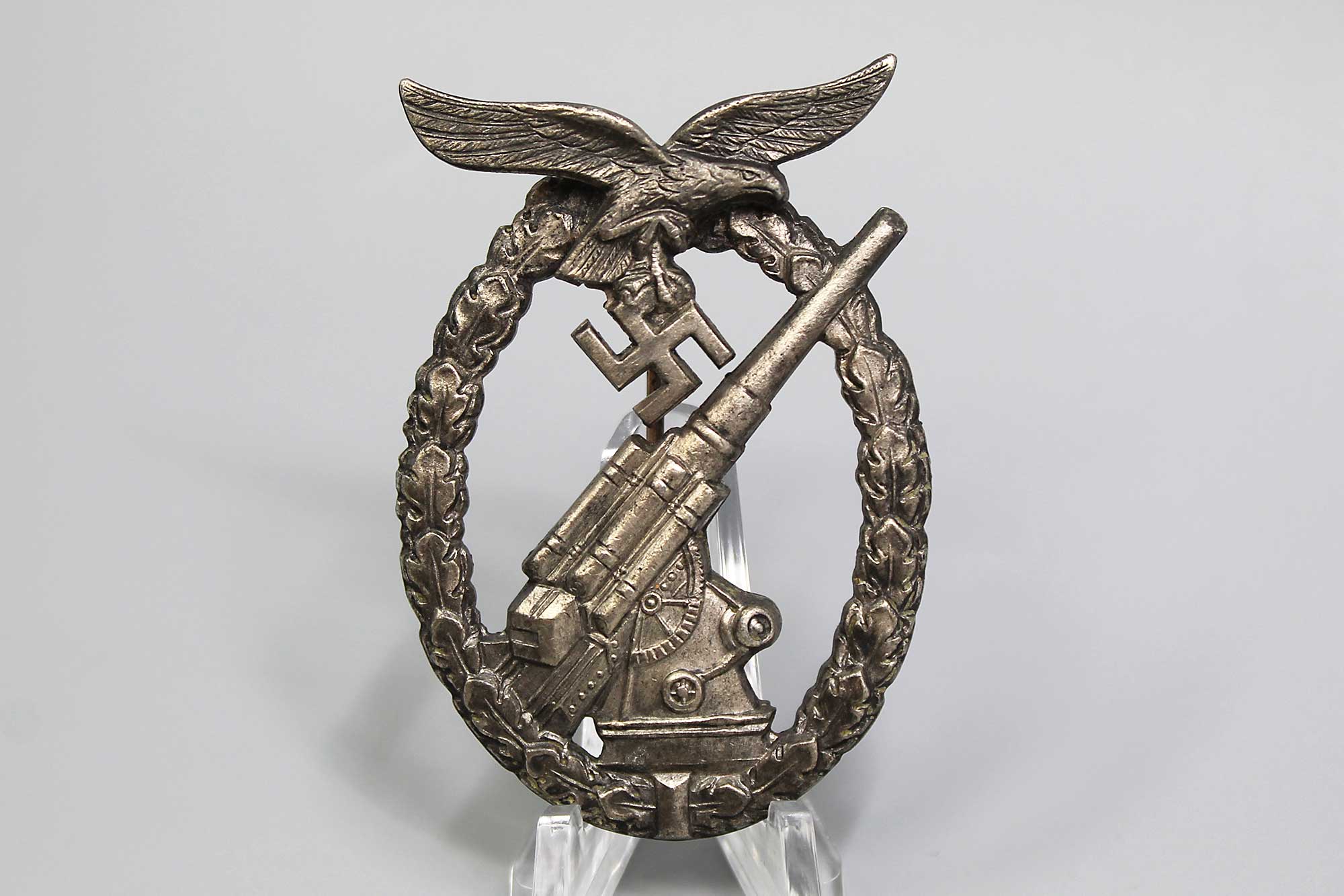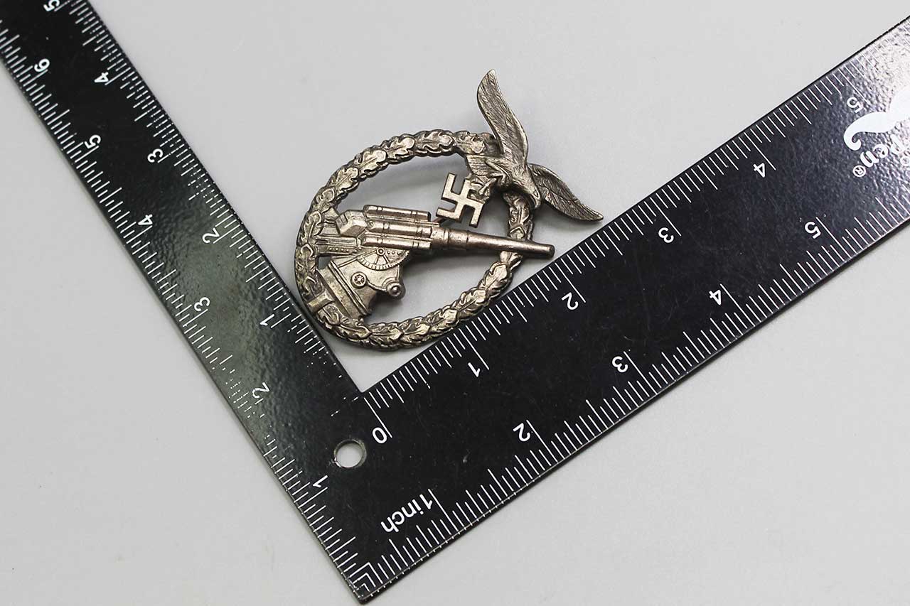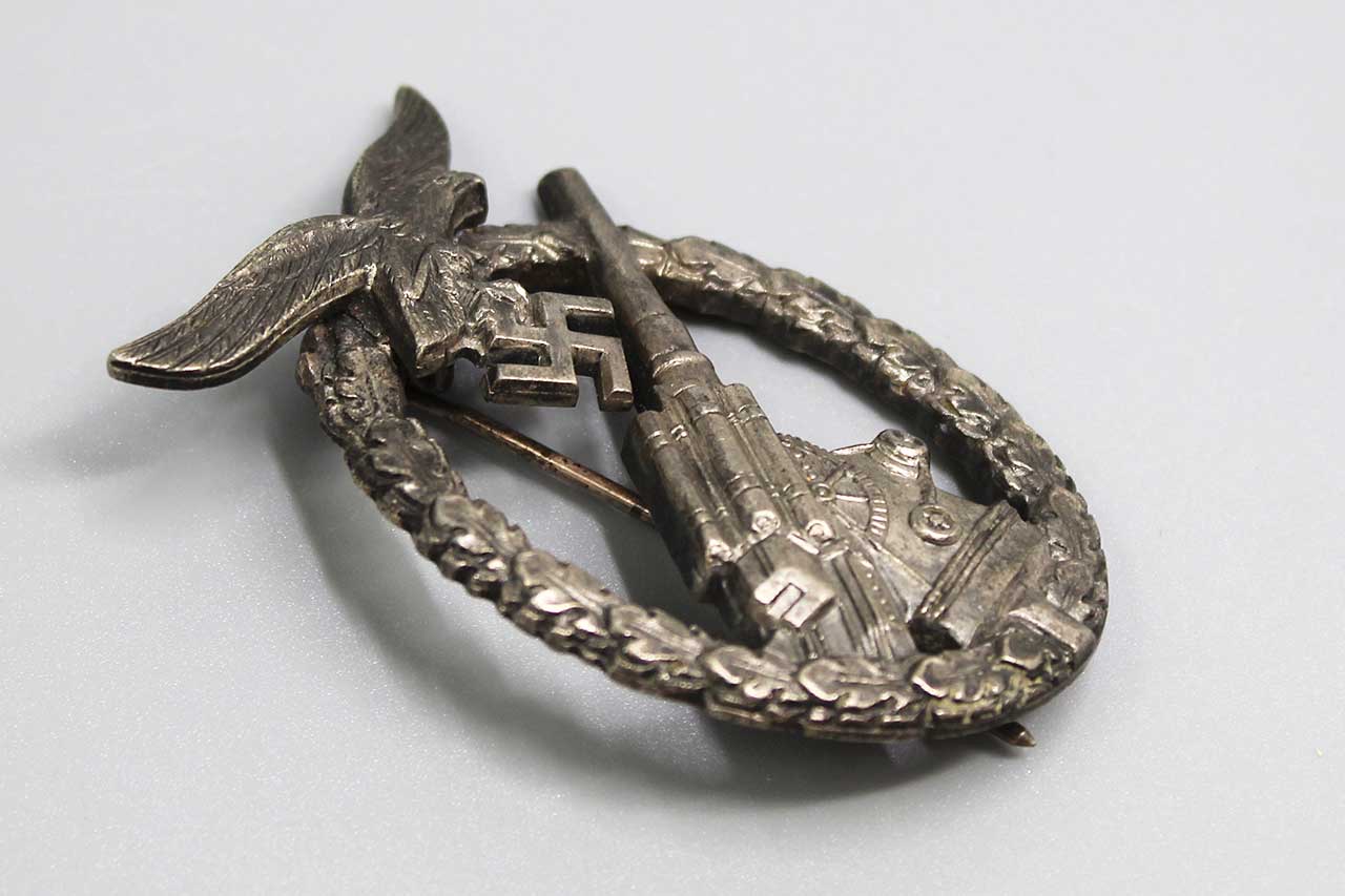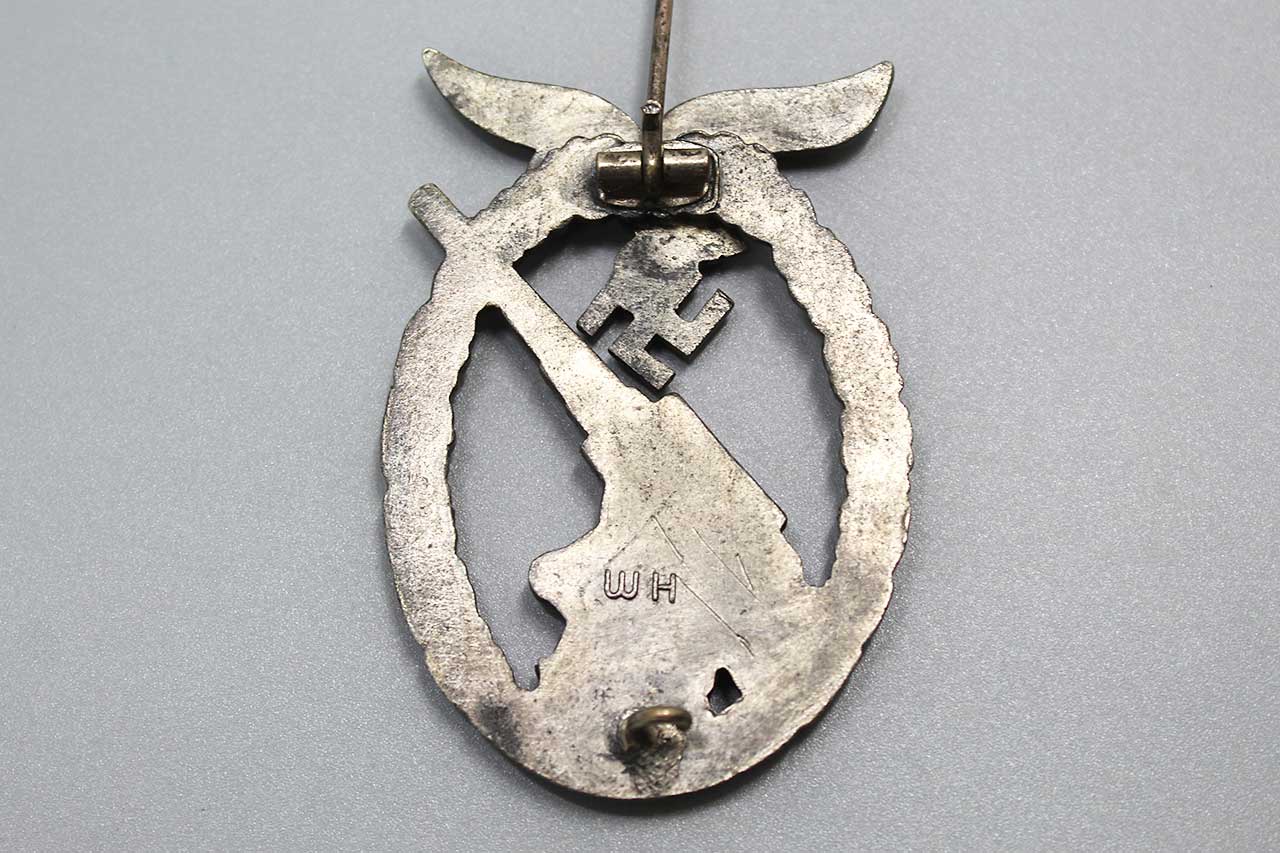 WW2 German Luftwaffe Flak badge. Marker marked on back W.H. for the maker of Wilhelm Hobacher of Vienna (Wilhelm Hobacher, Wien). Worn condition.