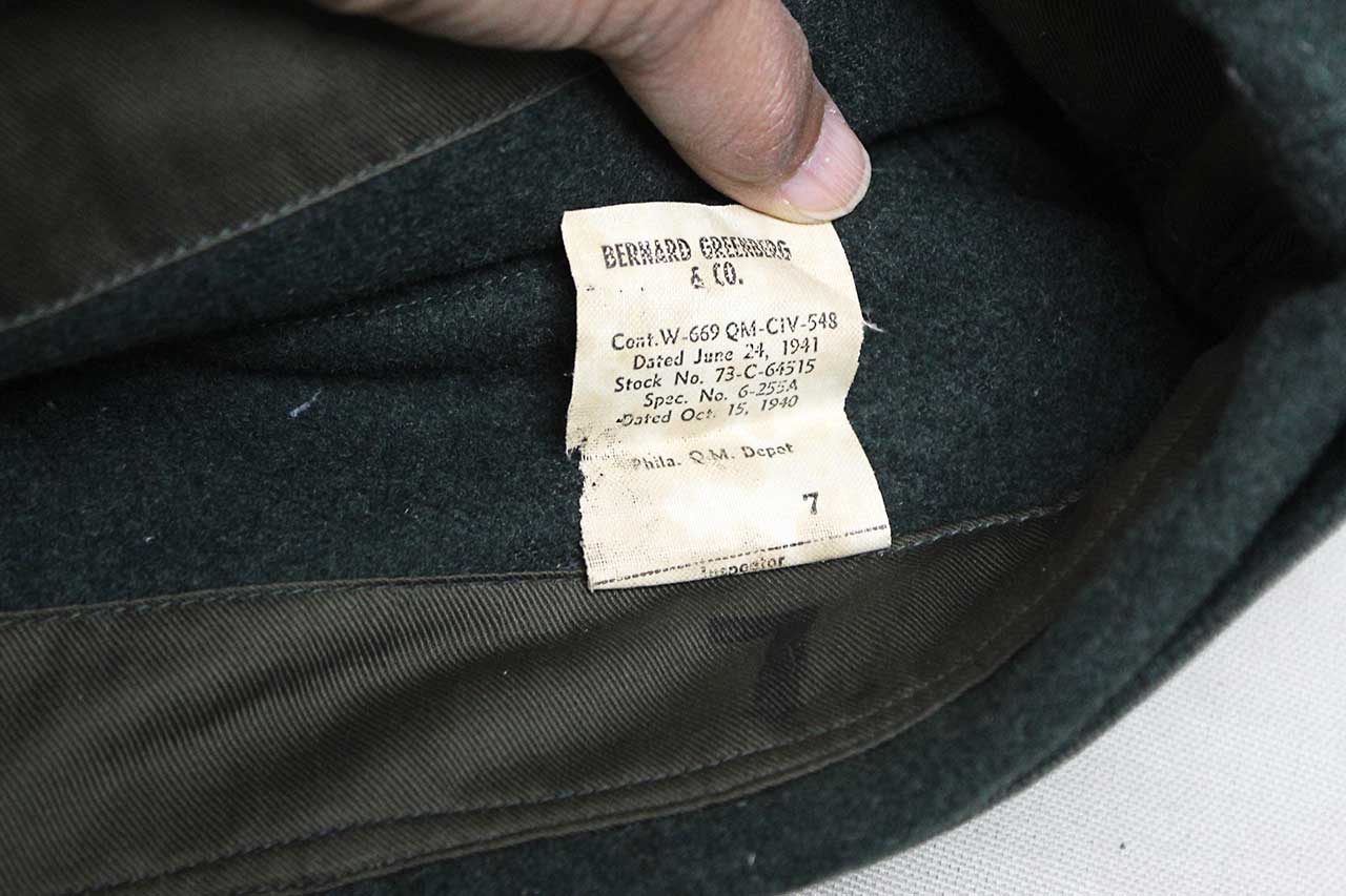 United States Military Workforce Winter Cap. US Quartermaster (QM) Contract tag contract dated 1940/1941 and size marked 7. Worn condition.