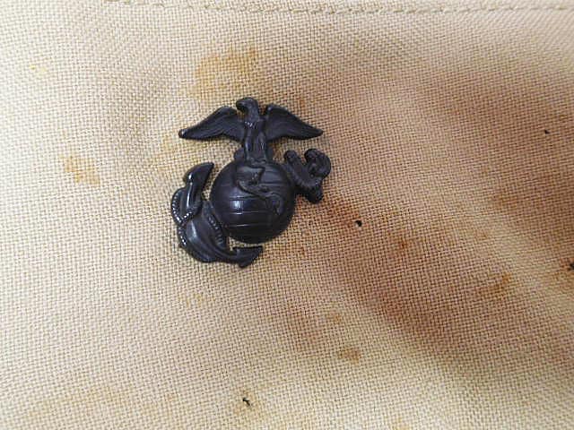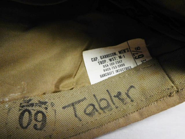 U.S. Marine Corps tropical garrison cap, Vietnam era. Very worn and used condition named cap. Decent cap EGA. Size marked 6 7/8.