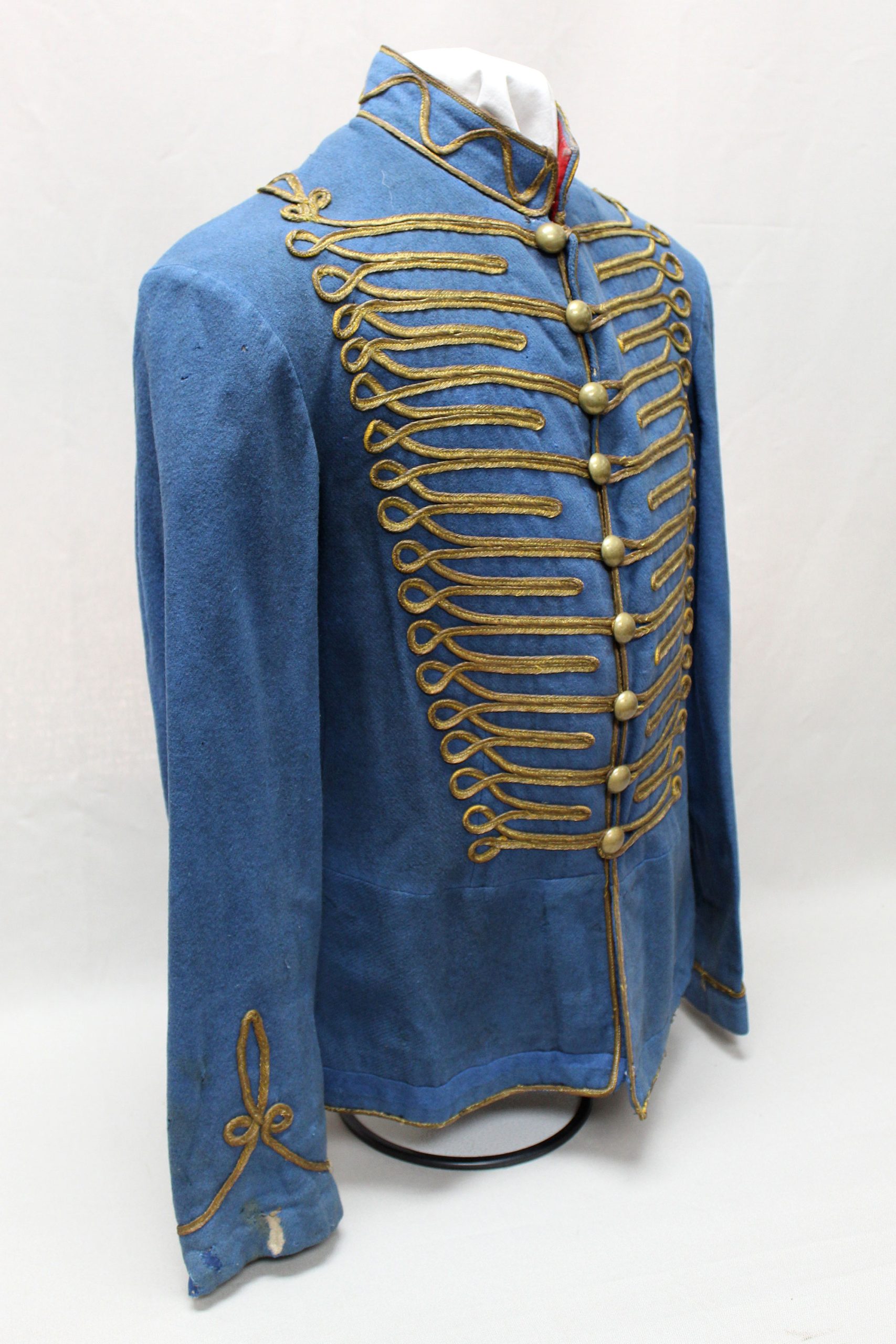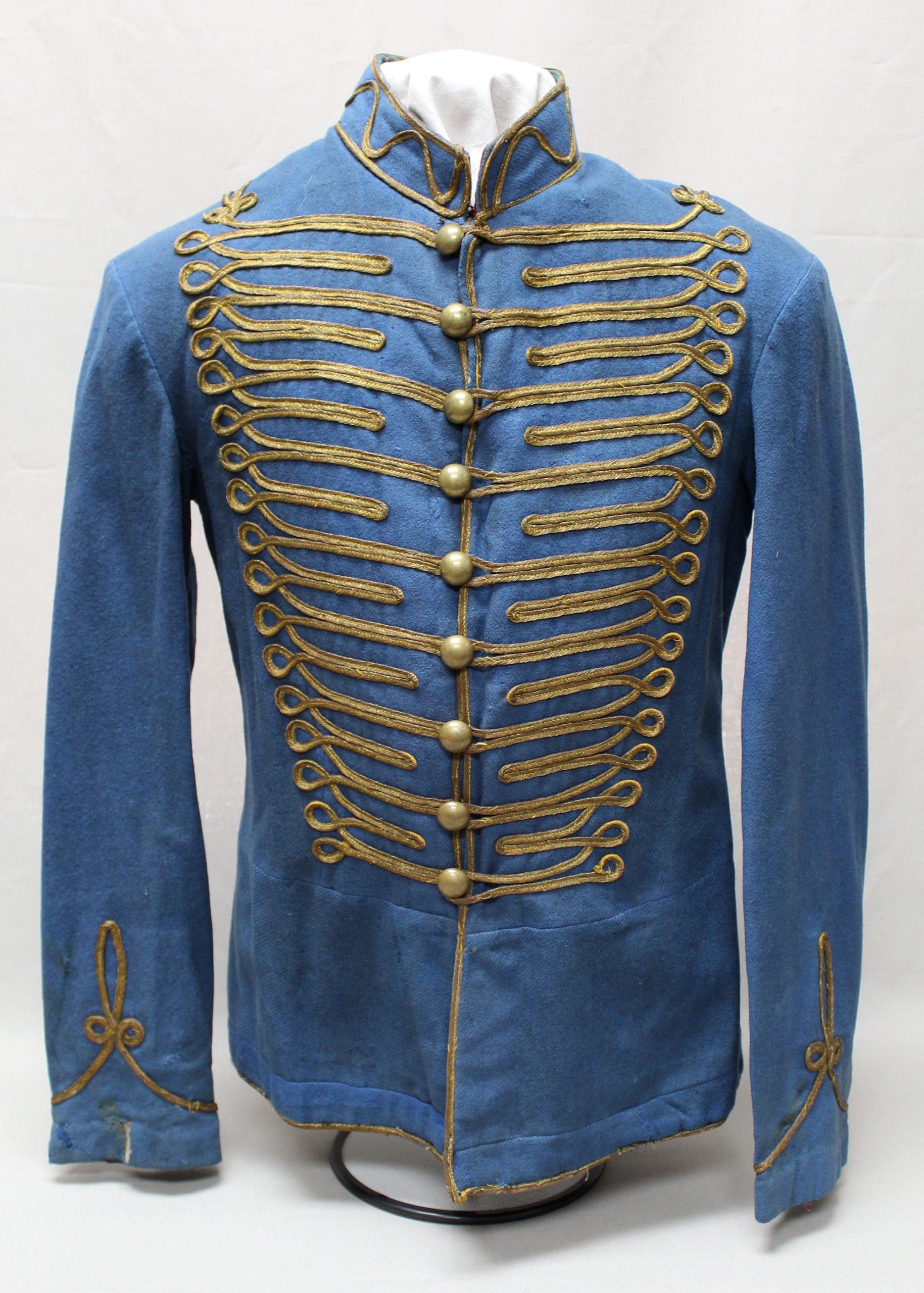 Additional Notes: The Attila is an elaborately braided Hungarian shell-jacket or short coat, decorated with lace and knots. Historically it was part of the uniform of the Hungarian cavalry known as hussars. It was a part of the everyday wear of rural men as well as members of the nobility and officials. The Attila was made in many styles and many colors including black, gray, blue, green, red and white. Some of these overlapped with the Turkish dolman. The origins of the Attila are believed to go back to the 16th century when Hungarians adopted the practice of wearing their short coats slung on one shoulder.