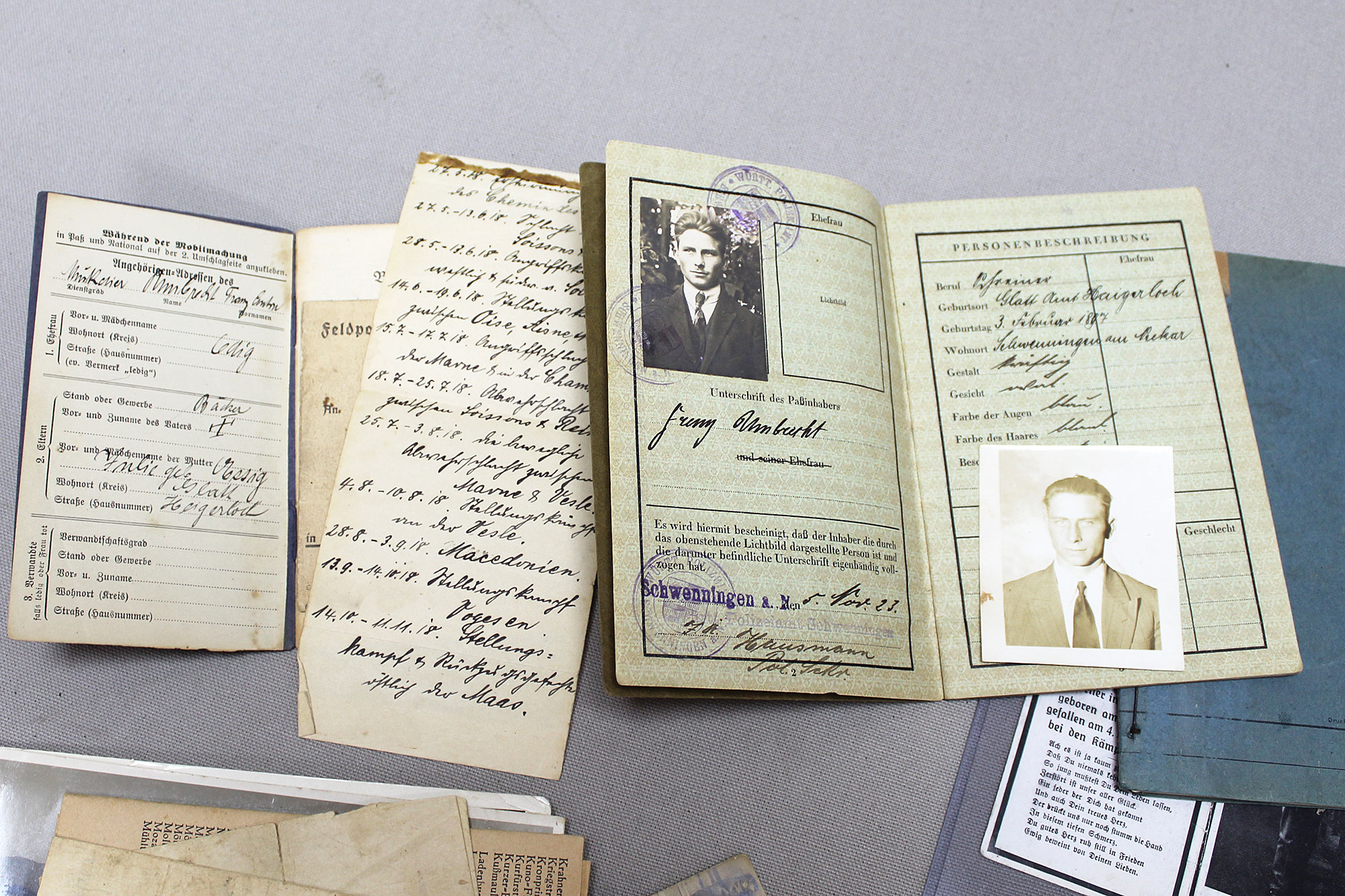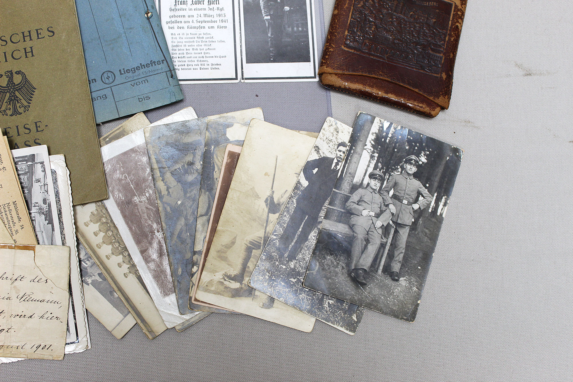 Imperial German Grouping. Several postcards, photos, remembrance card, booklets, and papers. Worn and used condition.
