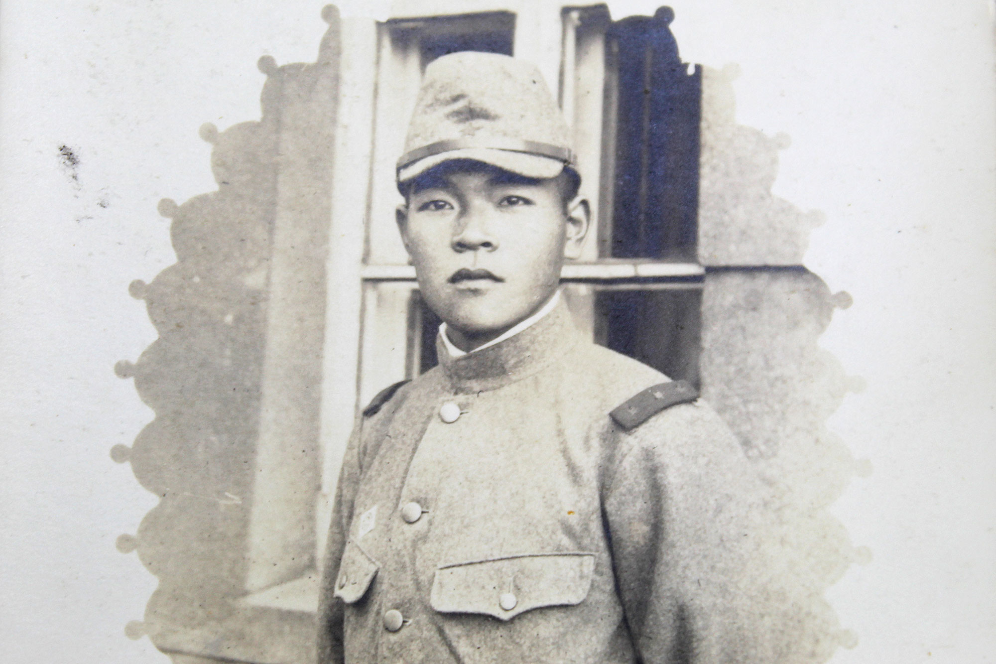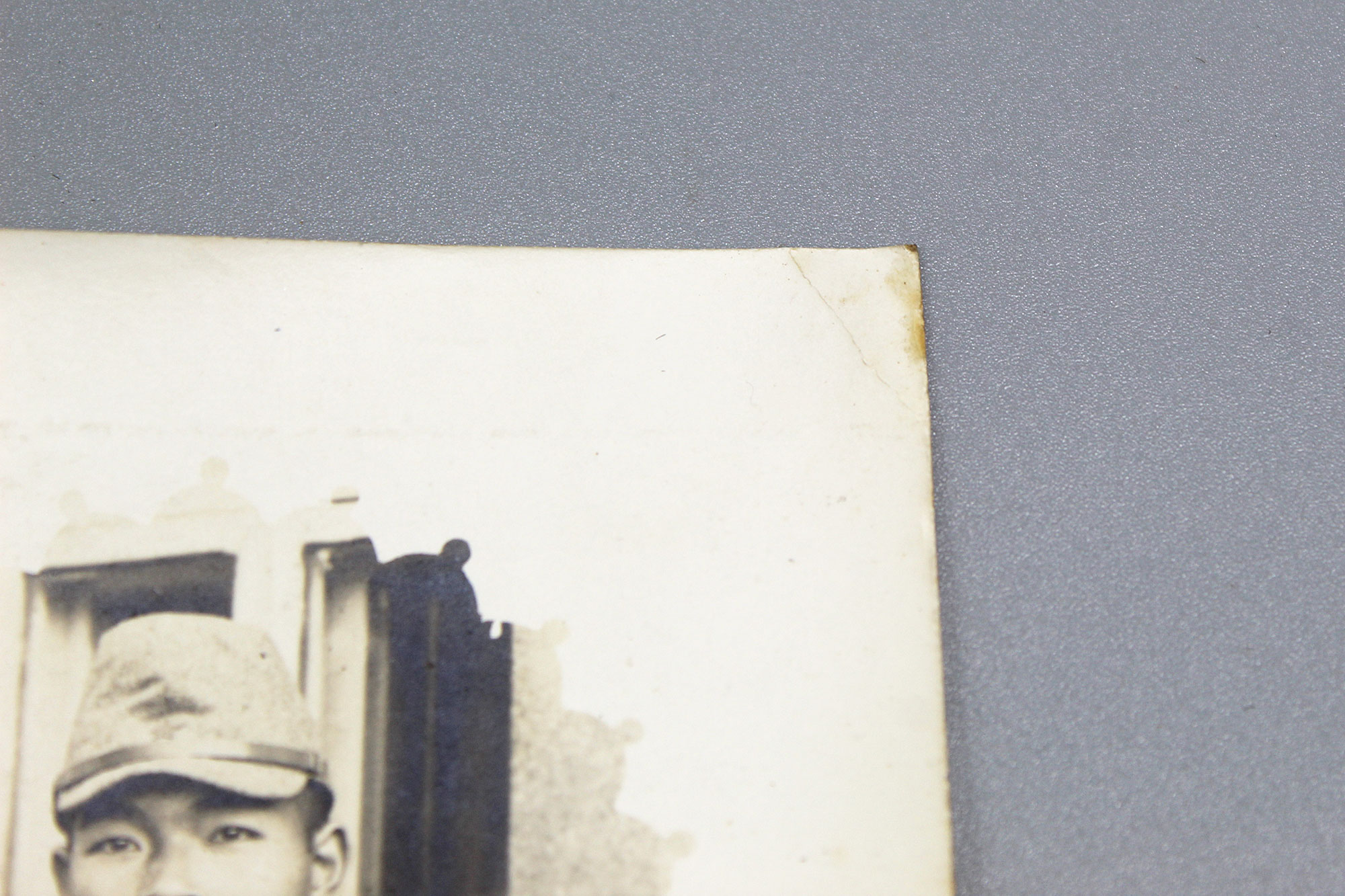 WW2 Japanese soldier photo. It looks to have been pulled from an album. Small crease at the top right corner.