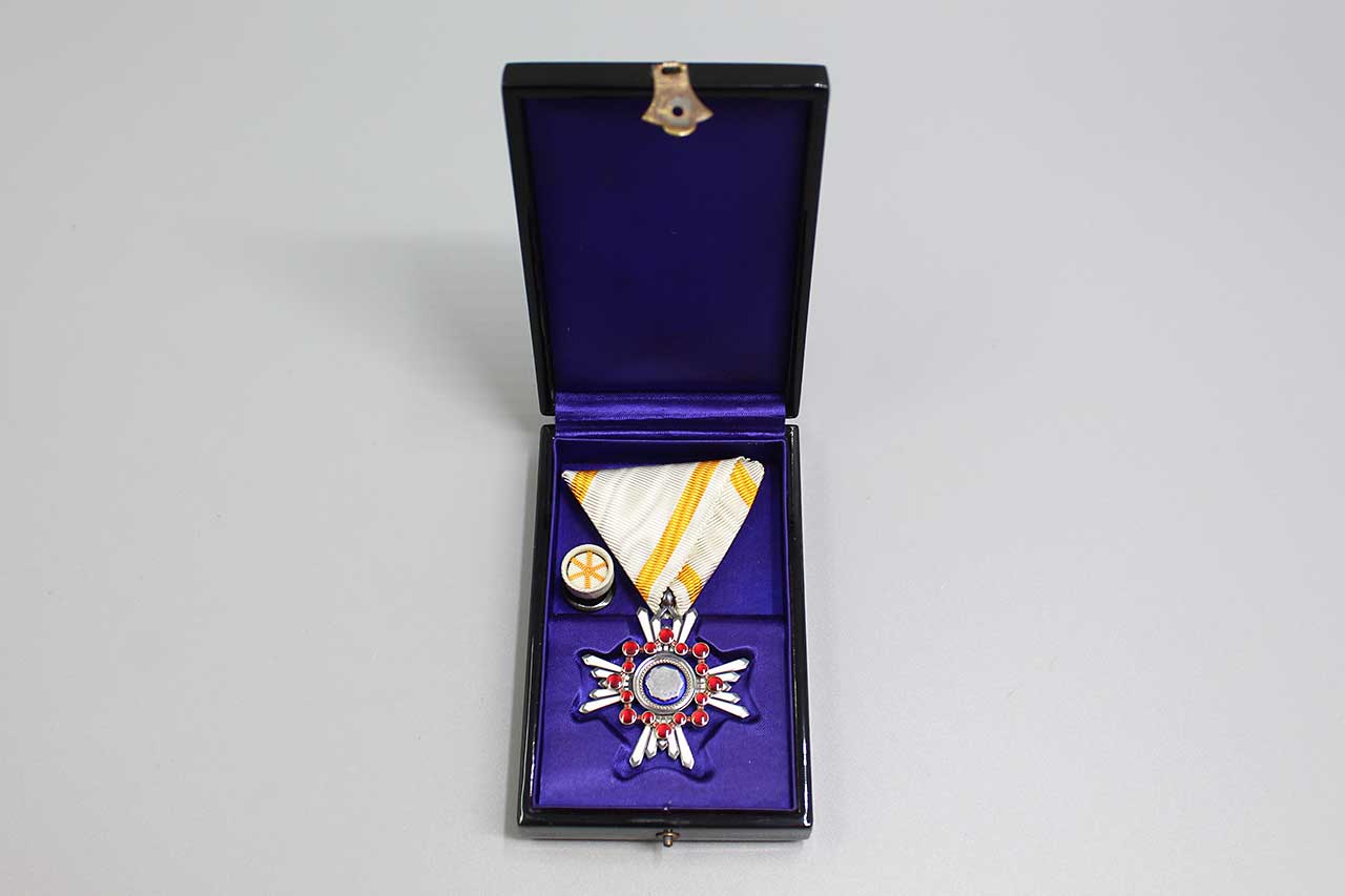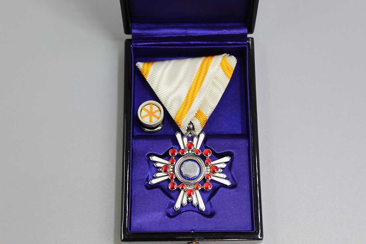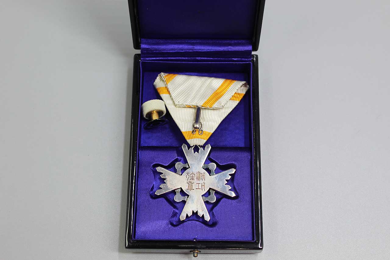 ADDITIONAL INFORMATION: The Order of the Sacred Treasure was established in January of 1888 by Emperor Meiji as the Order of Meiji. Originally awarded in eight classes (from 8th to 1st, in ascending order of importance), since 2003 it has been awarded in six classes, the lowest two medals being abolished that year. The most widely conferred Japanese order, it is awarded to those who have made distinguished achievements in research fields, business industries, healthcare, social work, state/local government fields or the improvement of life for handicapped/impaired persons.