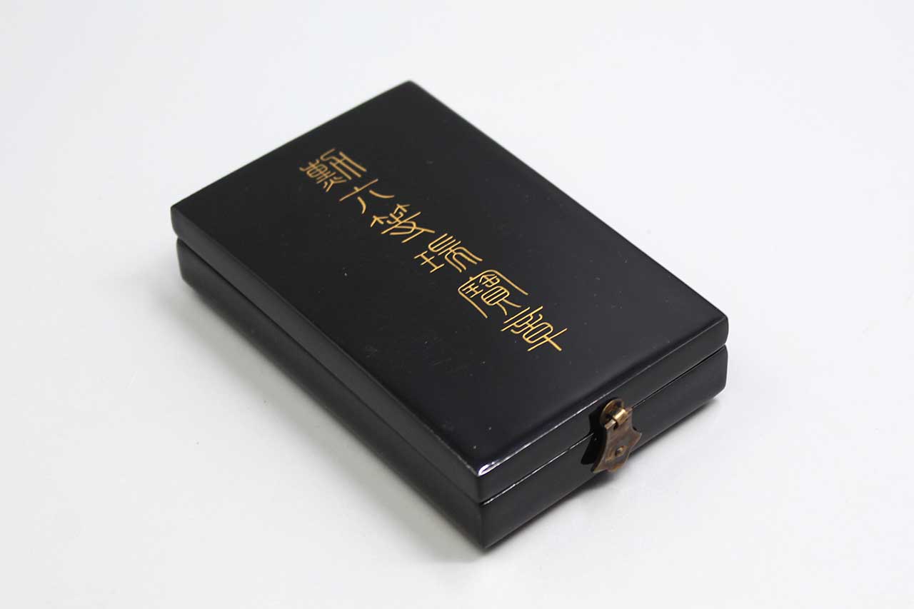 Japanese Sacred Treasure 6th class in black lacquered case of issue. Most likely post-ww2 issue. Worn condition.