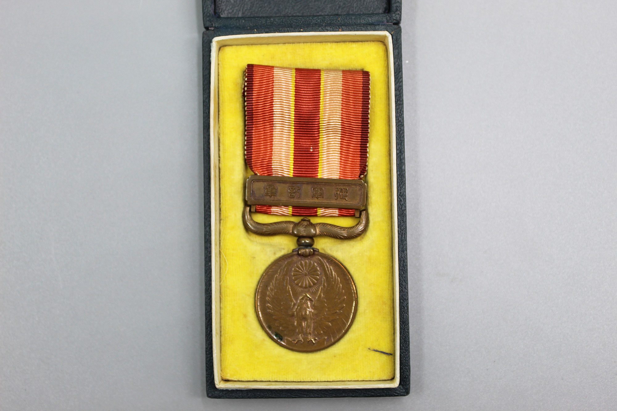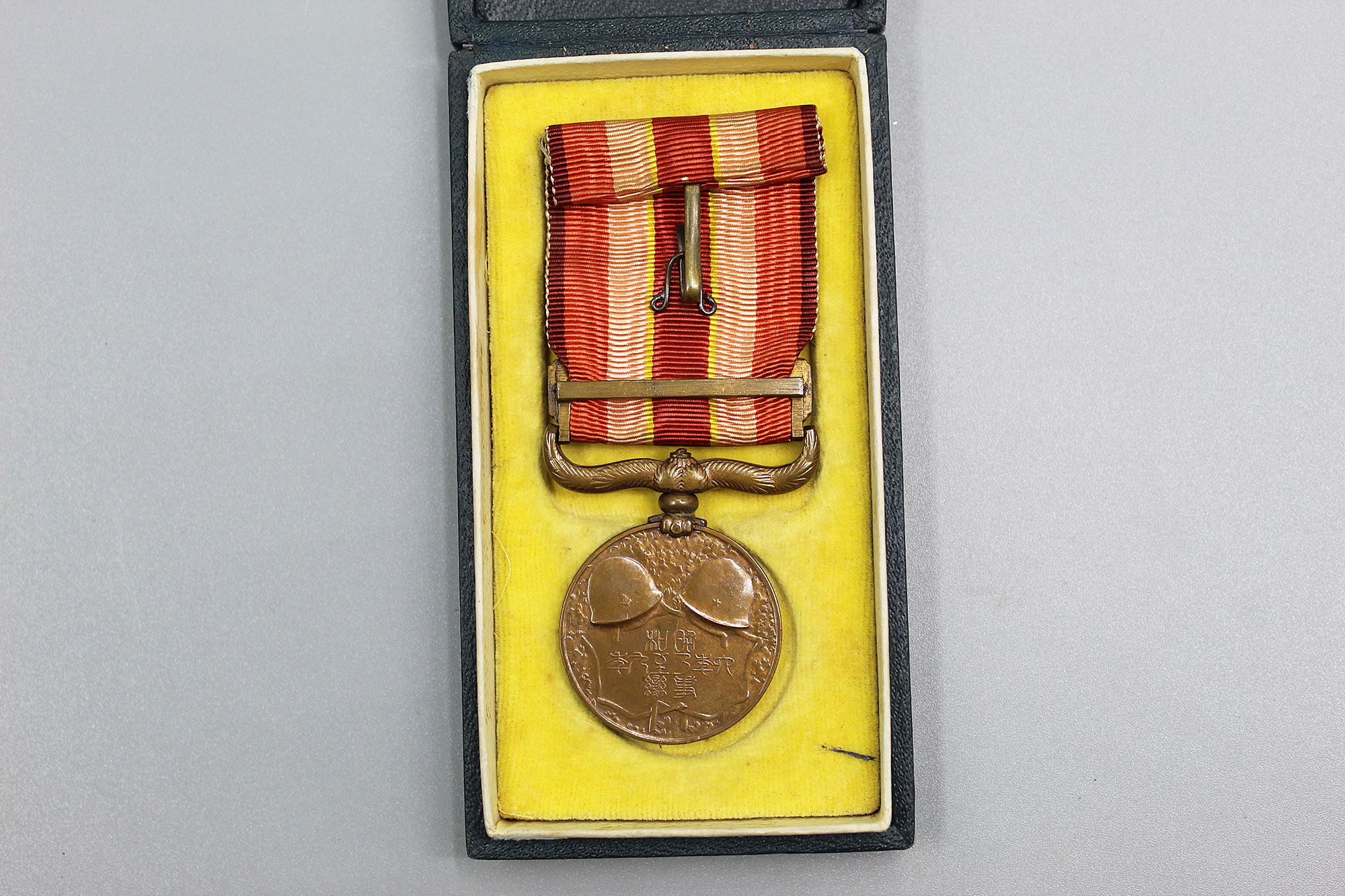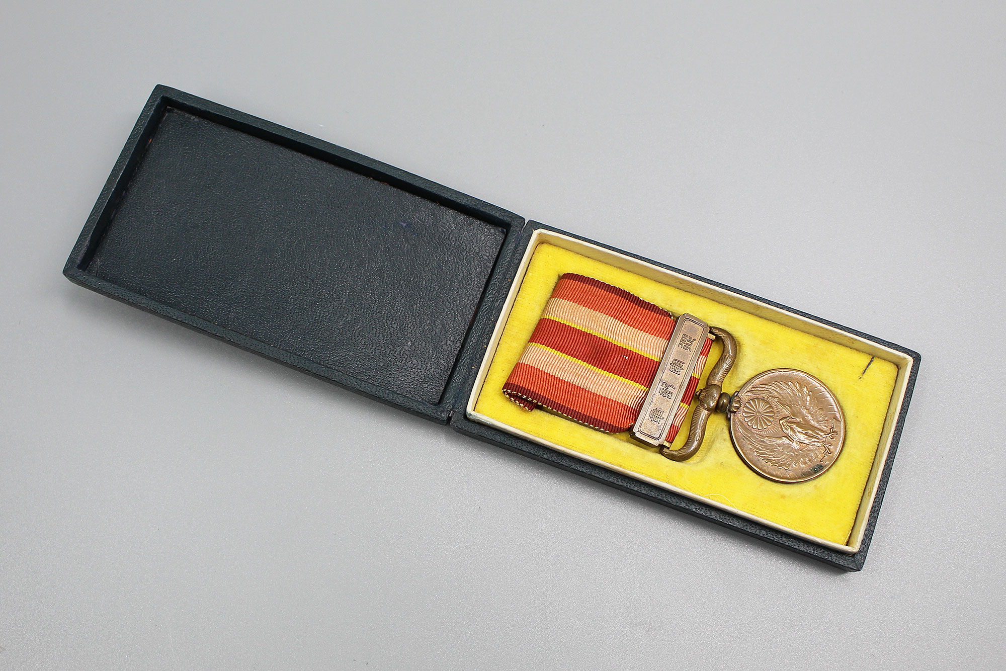 Additional Notes: The Japanese 1931-1934 Incident War Medal (Manchurian Incident) (also known as “Showa 6-9 years Incident Military Medal of Honor”) was enacted in July of 1934 and was awarded to soldiers that took part in the Manchurian Incident. The ribbon is decorated with the shade vine of Seocho, which appears in “Kojiki”, to express the honor of the incident. The crimson color means the intense loyalty, the red sincerity of the Yamato people and the Japanese flag and the yellow color means the birth (of the Nation) of Manchuria.
