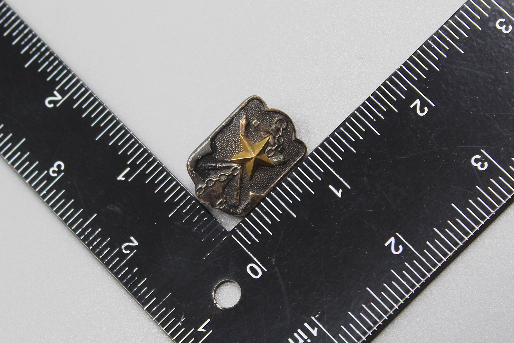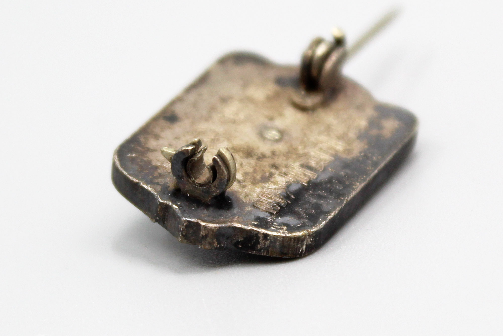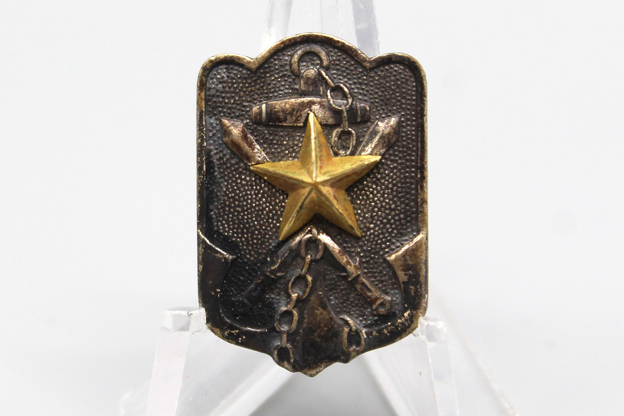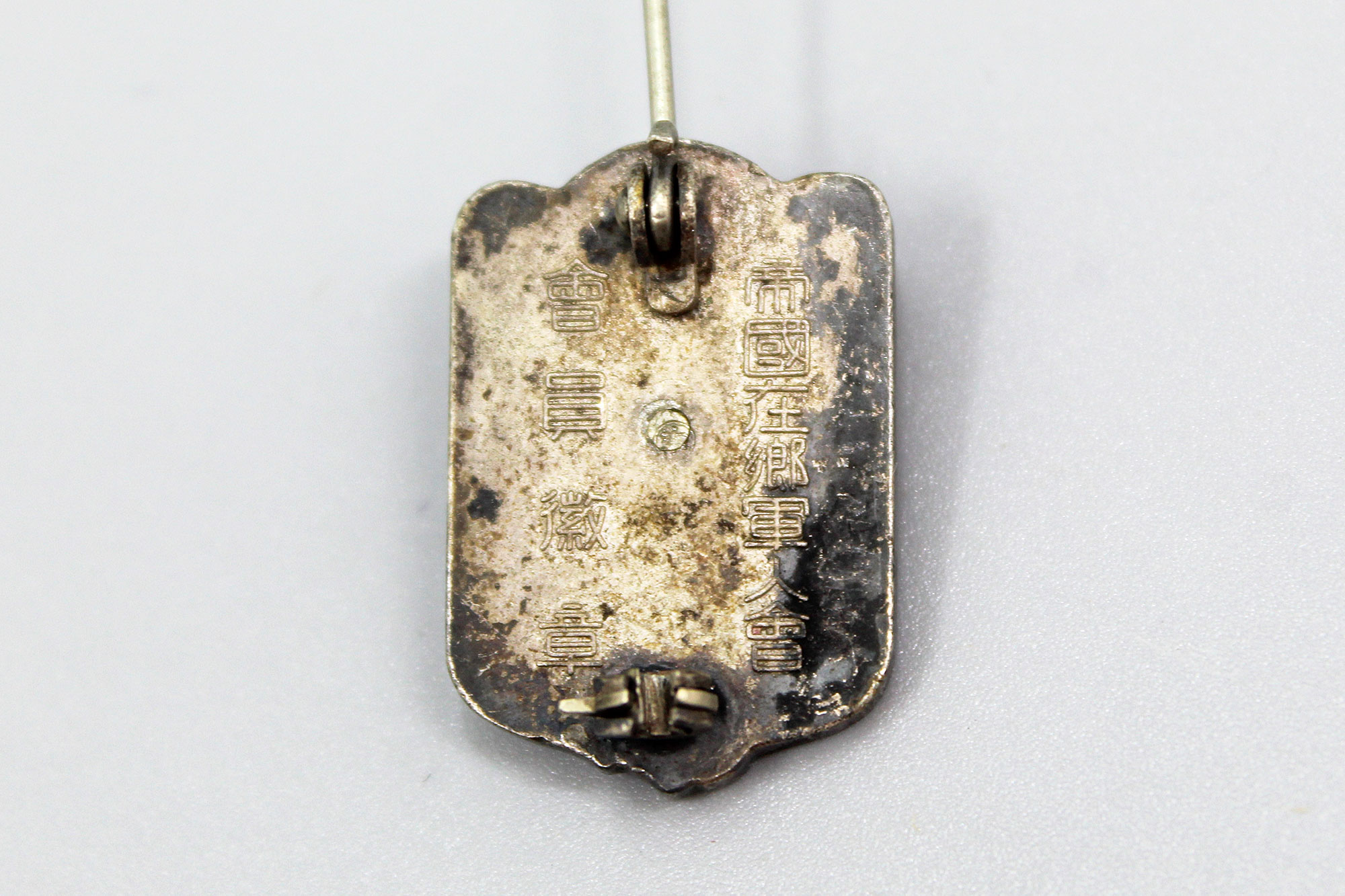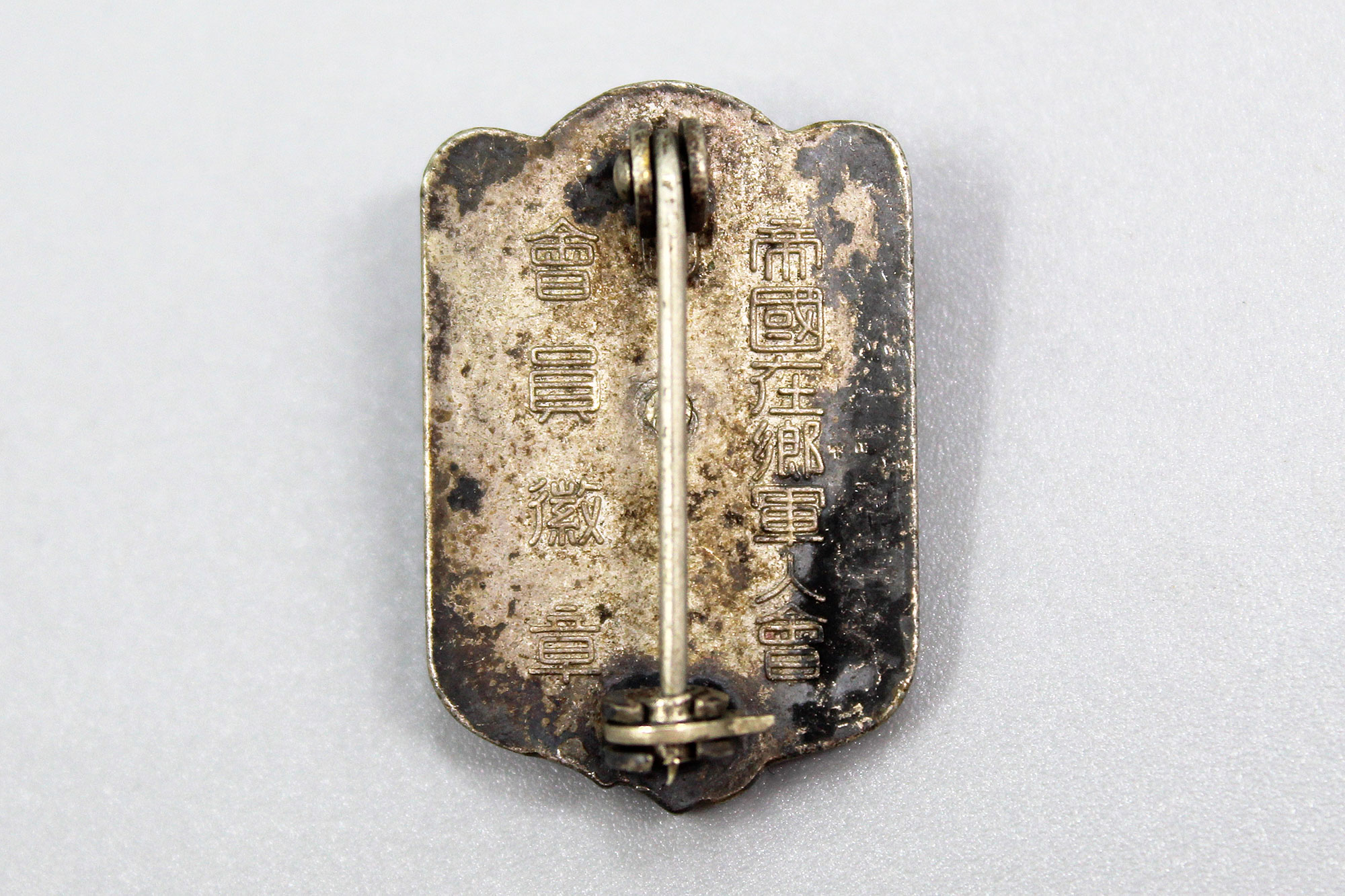 Japanese Expired Time Soldier’s League Member Badge. 1940s (WW2) era. Size approximately 1 inch x 3/4 inch. Pin back.