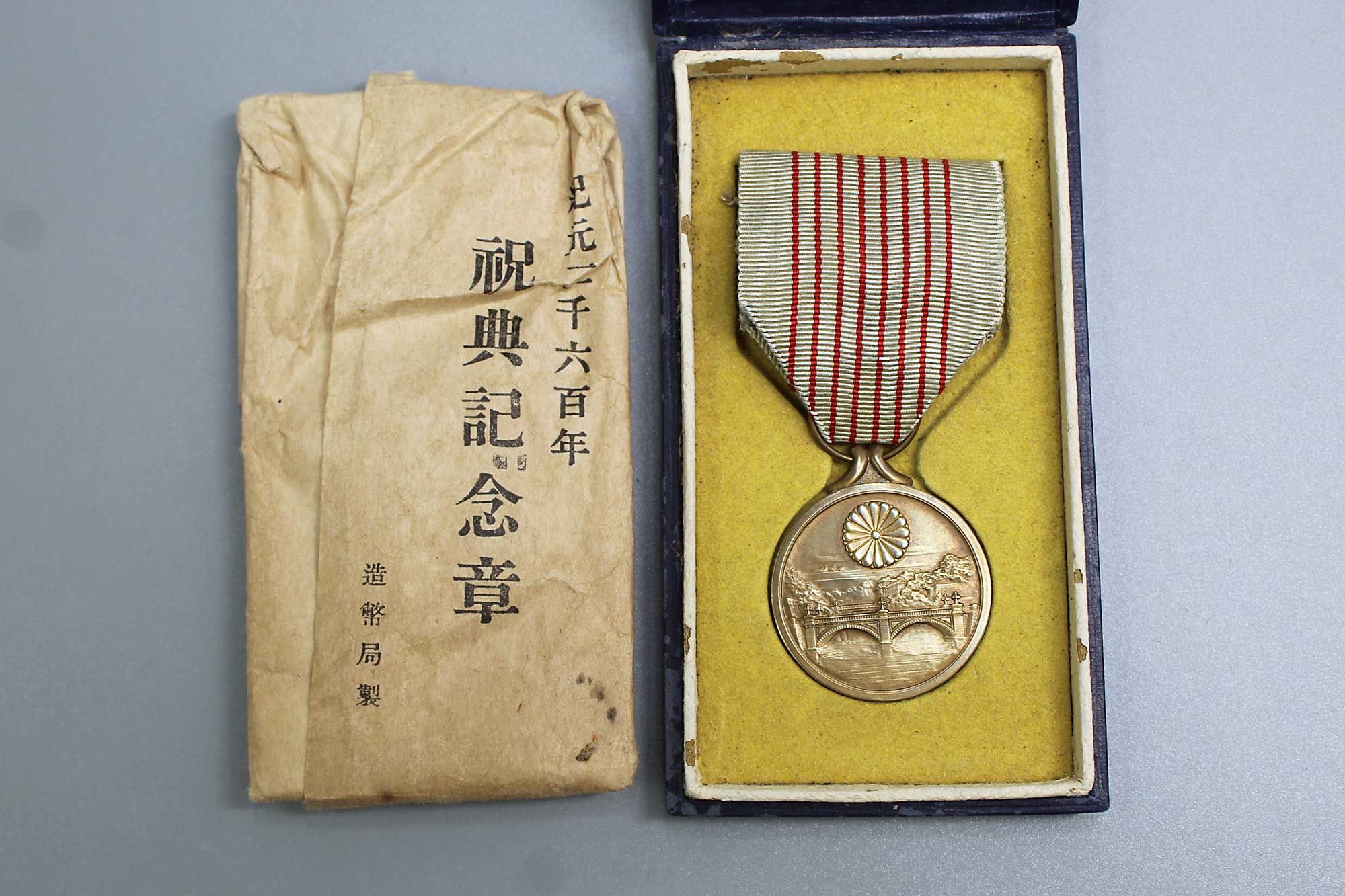Additional Notes: The 2600th anniversary of the Japanese empire medal was issued for the celebration in November of 1940. The medal was instituted in July of 1940, to be awarded to those summoned to the 1940 National Anniversary Day Festival, to those invited to the 2600th anniversary ceremonies, and to those connected with official duties and important affairs of the anniversary.