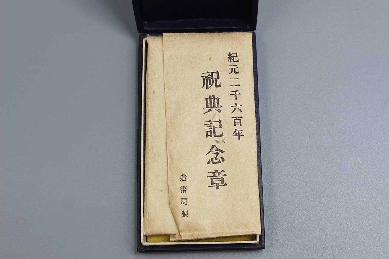 Japanese 2600th Anniversary of the Japanese Empire Commemorative Medal in Case and Paper. Worn condition.