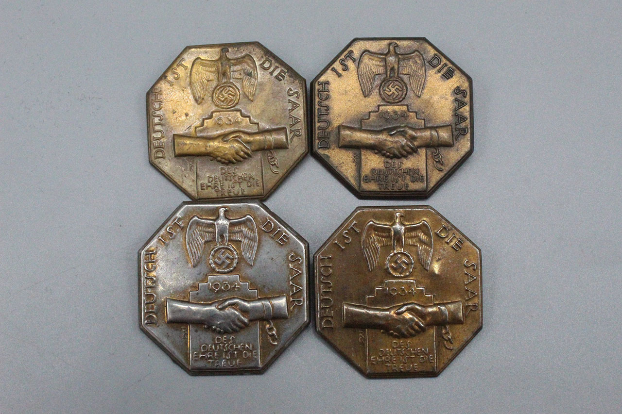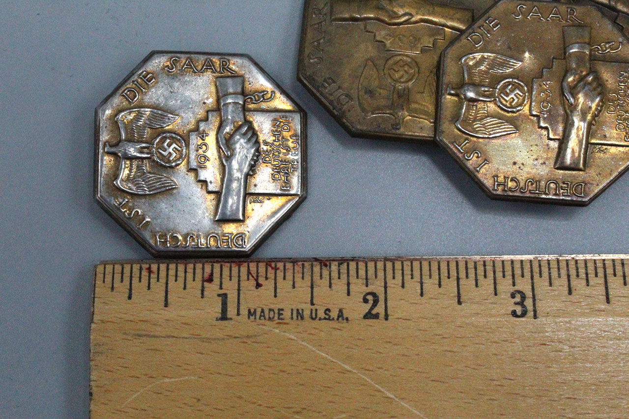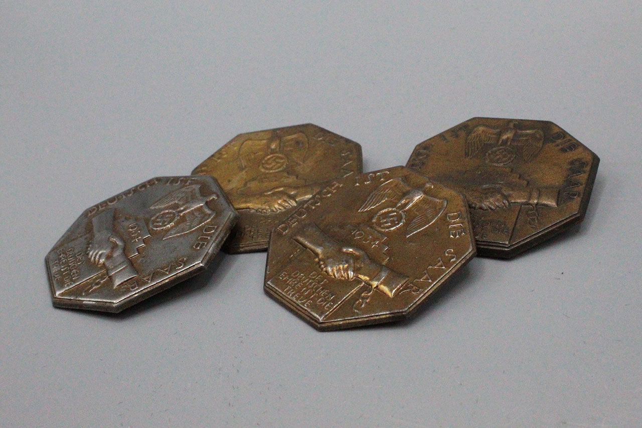WW2 German 1934 1st Die SAAR Tinnie – PER TINNIE. Die stamped steel based tinnie with bronze washed finish.