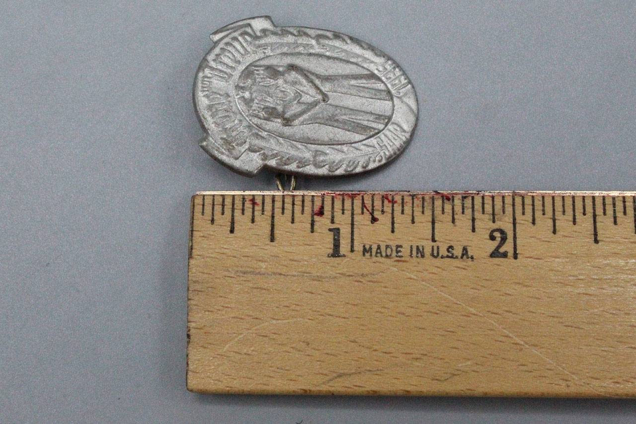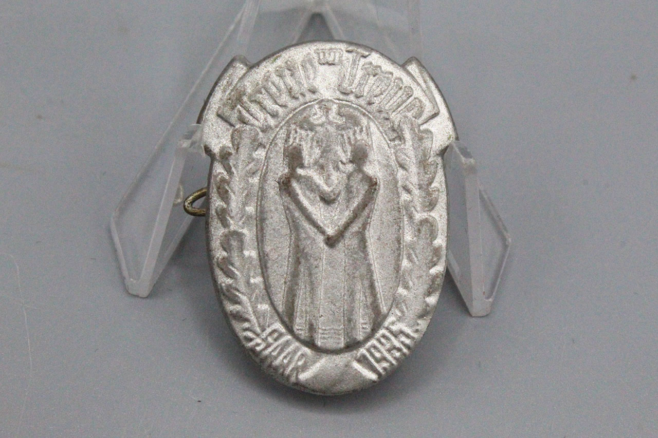 WW2 German Treue um Treue SAAR 1935 tinnie. Die stamped tinnie with safety style pin system. Size approx 1 3/8 inches in height.