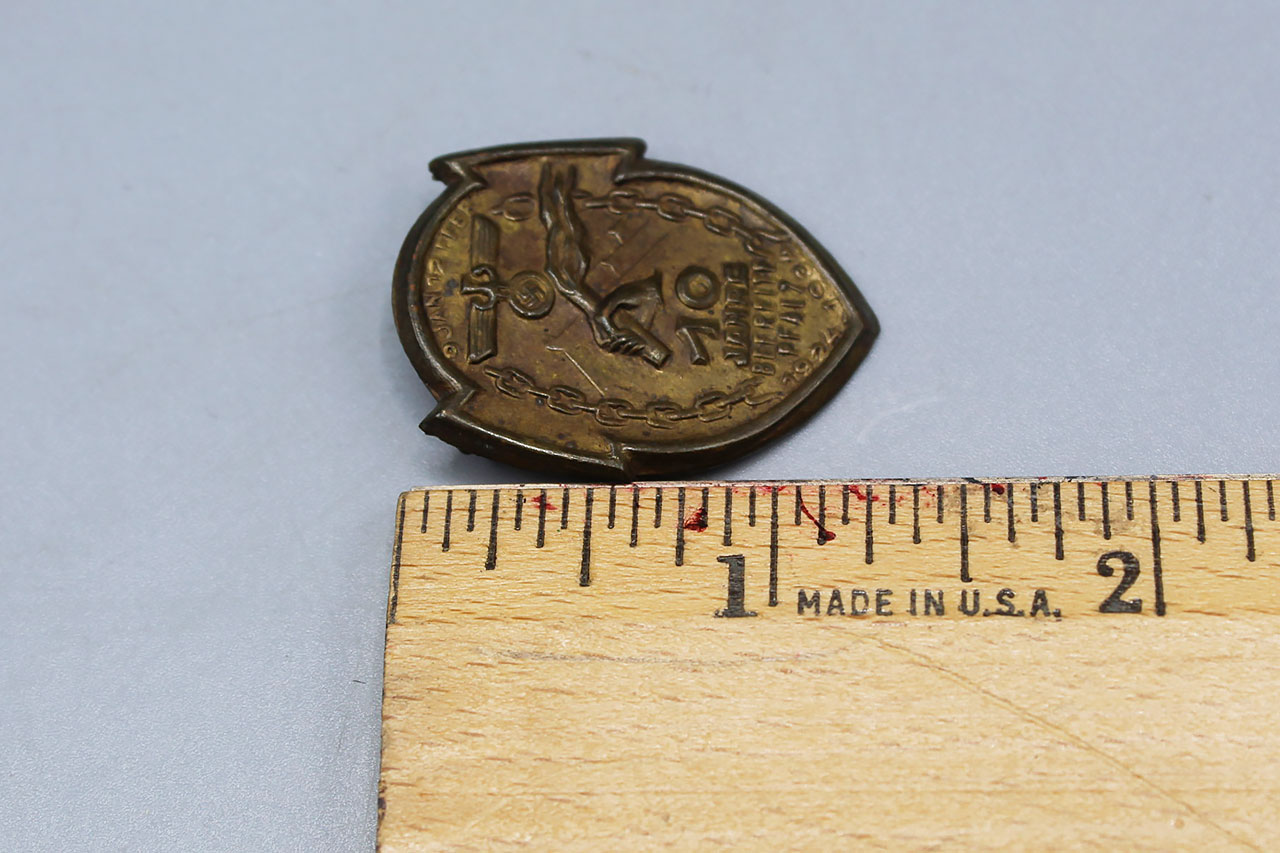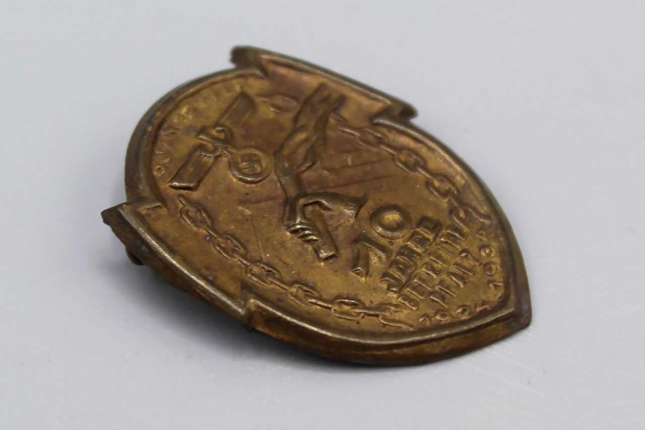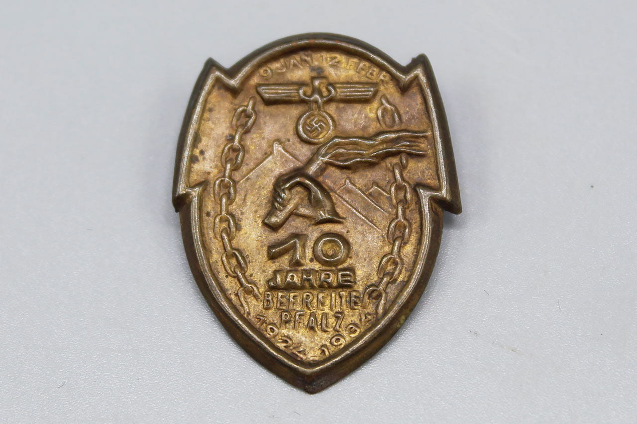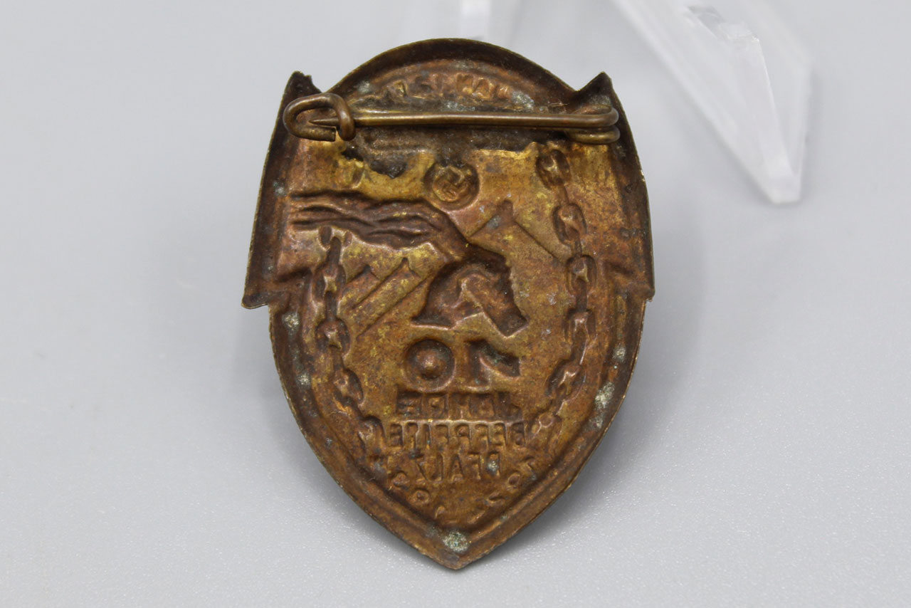 WW2 German 10 Jahre Beereite Pfalz 1924-1934 tinnie. Stamped brass tinnie. Height approx 1 1/4 inches in height.
