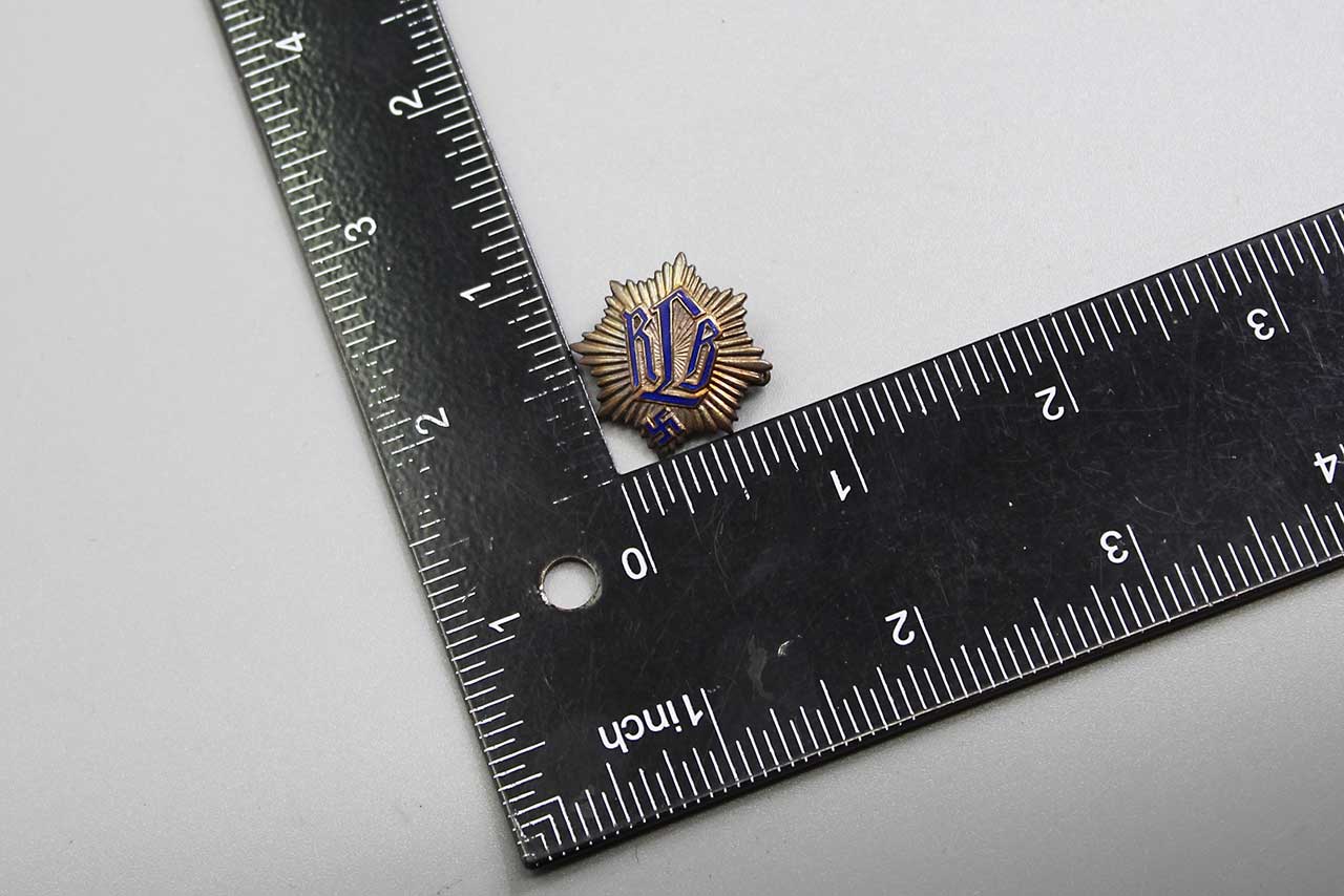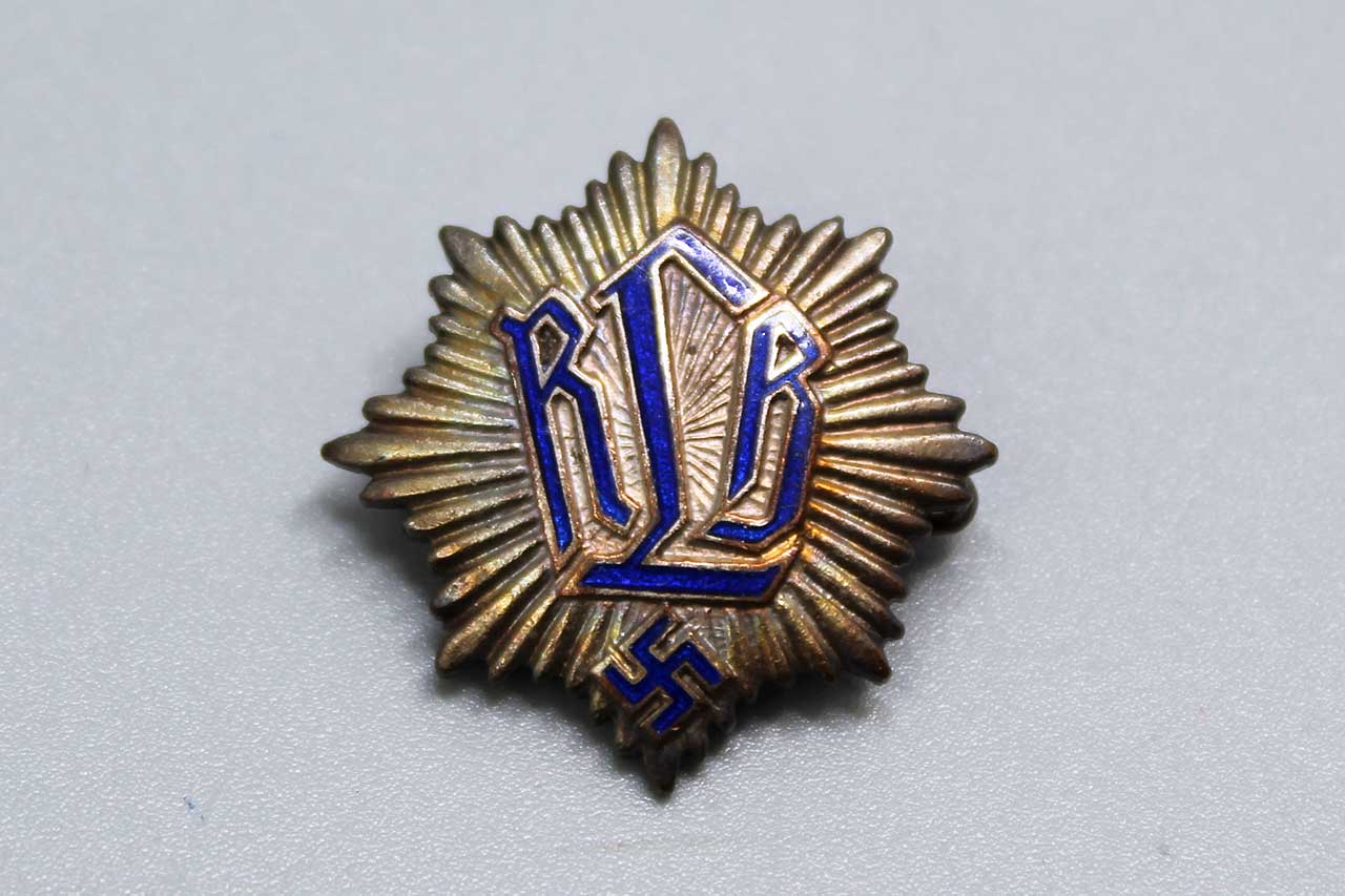 WW2 German RLB (Reichsluftschutzbund or National Air Raid Protection League) members pin. First pattern pin. Marker marked Biedermann & Co Obercasselbonn and Ges.Gesch on back. Size approximately 7/8 inch across. Worn condition.
