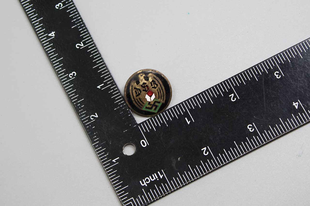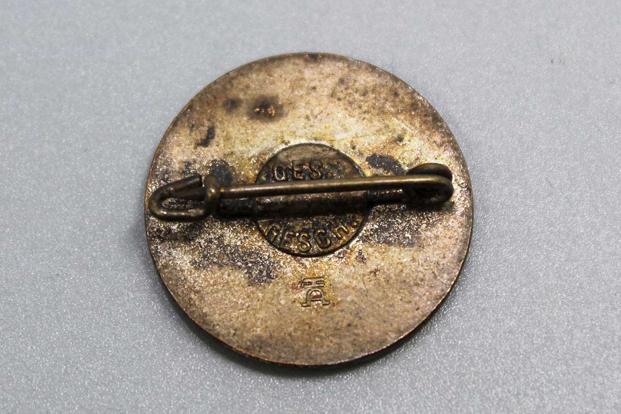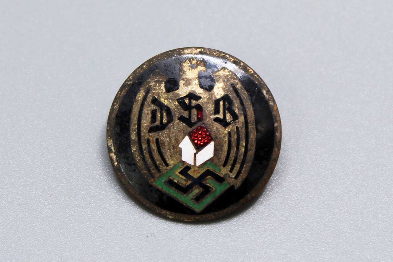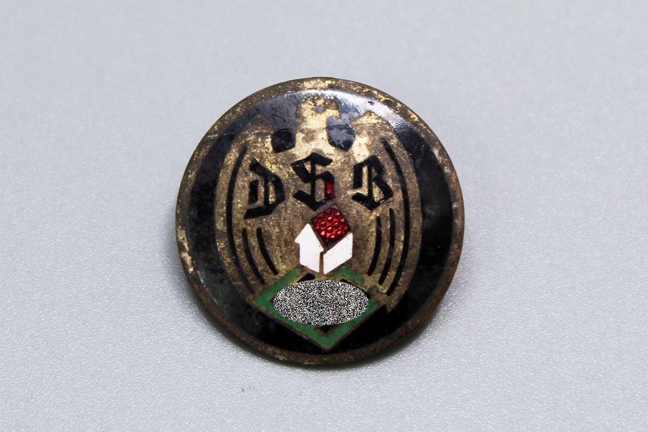WW2 German DSB (Deutscher Siedlerbund) Homeowner Association Members Pin. Marked on back Ges Gesch and with the Hermann Aurich “HA” logo. Size approximately 7/8 inches across. Worn condition.