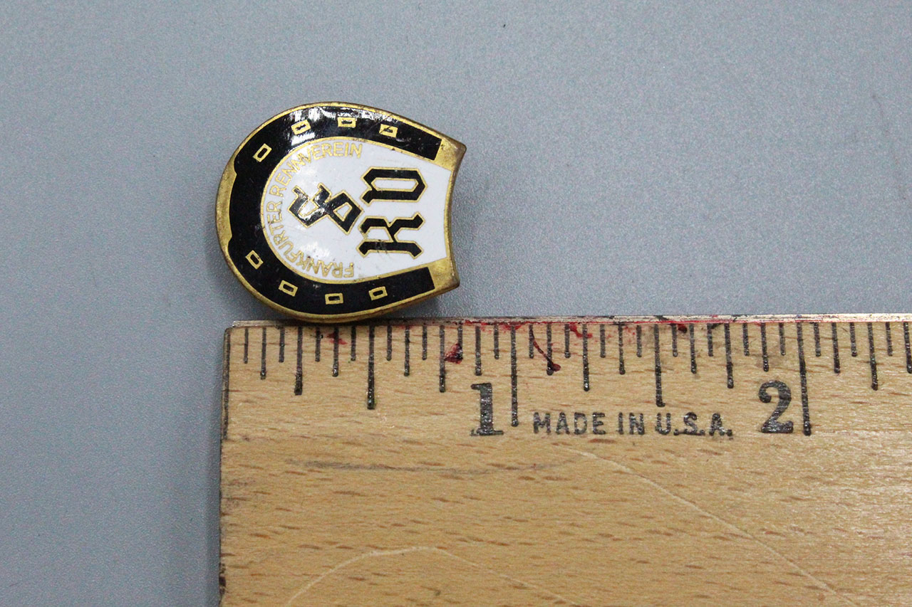 WW2 German Frankfurter Rennverrein FRV enameled lapel pin marked Lauer Nurnberg Berlin and #3.