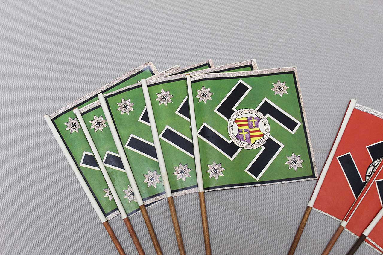 REPRODUCTION: This is for a Group of small paper WW2 German flags. This is for the group shown in the picture. These are reproductions.