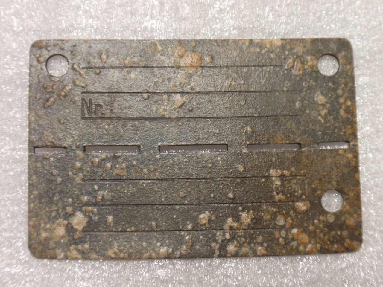 Reproduction blan German ID tag. Artifical aging and corrosion