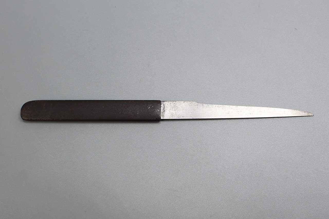 Additional Notes: The Japanese kozuka serves as the handle of a small utility knife carried within the scabbard of Japanese daggers and swords. This decorative part of a sword mounting is often elaborately decorated, revealing the status, wealth, and style of its owner. The kozuka specifically refers to the handle of a small Japanese knife called kogatana, however, among collectors, the whole knife is often referred to as kozuka. The kozuka was often designed to match the kogai (hairdressing tool). It was made to fit into the sides of Japanese sword scabbards, such as those of the katana, wakizashi, and tanto. A kozuka was often elaborate and of fine craftsmanship, decorated with carvings, inlays, and colored metals. Those made from copper-gold-alloy (shakudo) with golden elements were popular among samurai and typically worn on formal occasions.