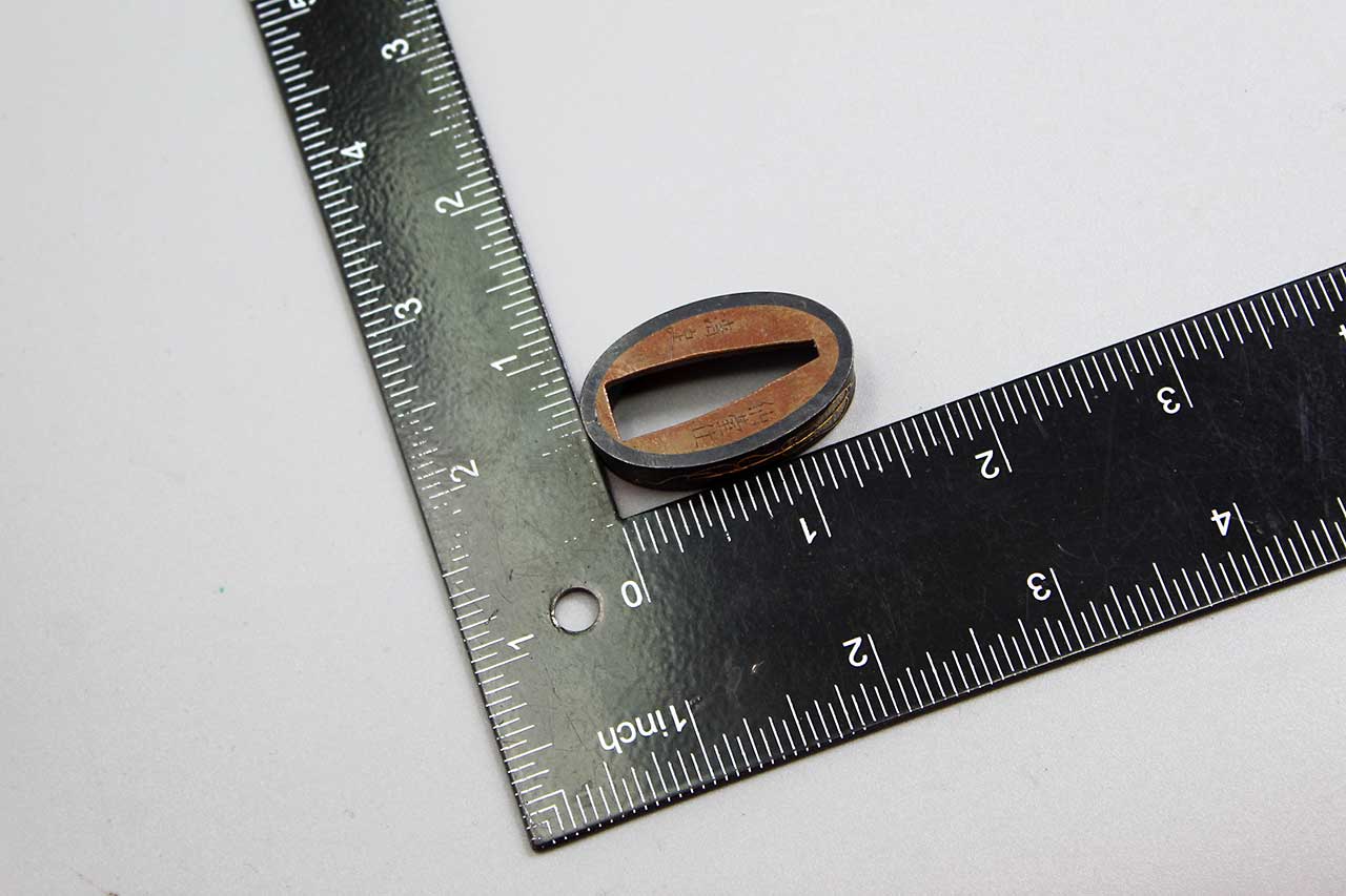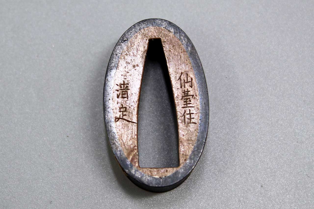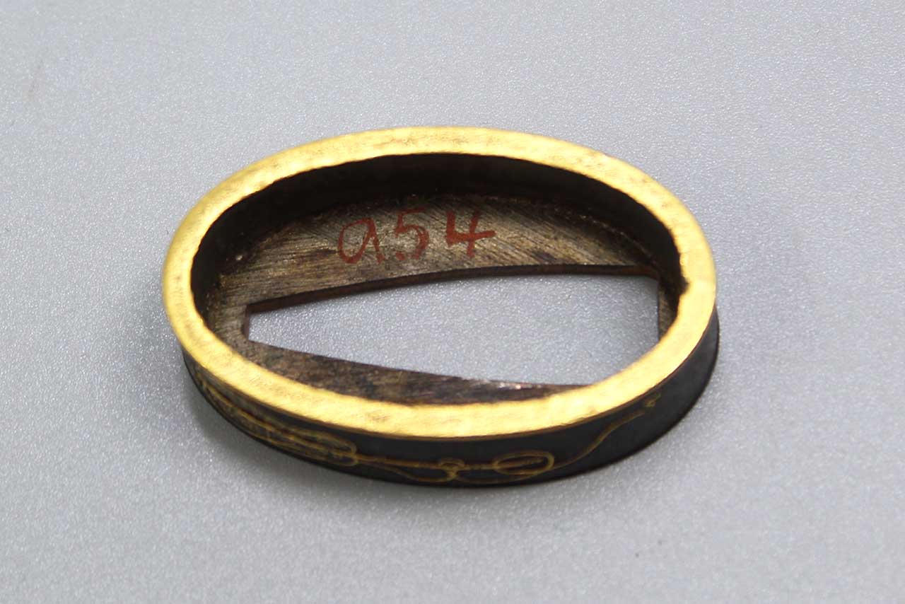Additional Notes: The Japanese sword fuchi is a key component of a Japanese sword’s hilt. It is a metal collar that fits snugly between the tsuka (handle) and the tsuba (hand guard). The fuchi serves several important functions such as structural stability, it secures the handle components, ensuring the tsuka-ito (handle wrap) doesn’t unravel and providing overall stability. It also provides aesthetic appeal, often intricately designed, the fuchi can be adorned with engravings, inlays, or other decorations, reflecting the craftsmanship and status of the sword. It also provides connection by complementing the tsuba and kashira (butt cap), creating a unified and visually pleasing look for the sword’s hilt.