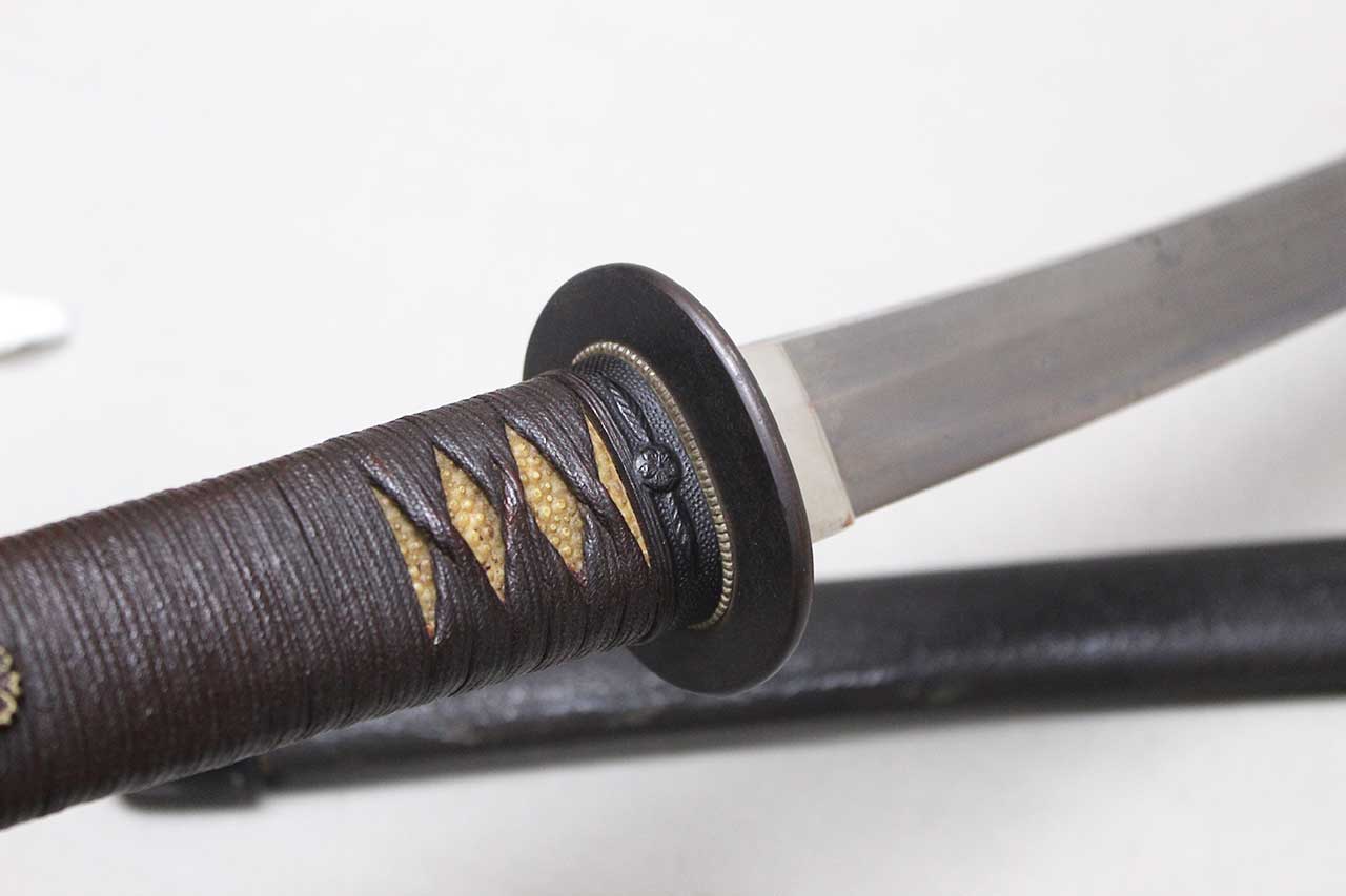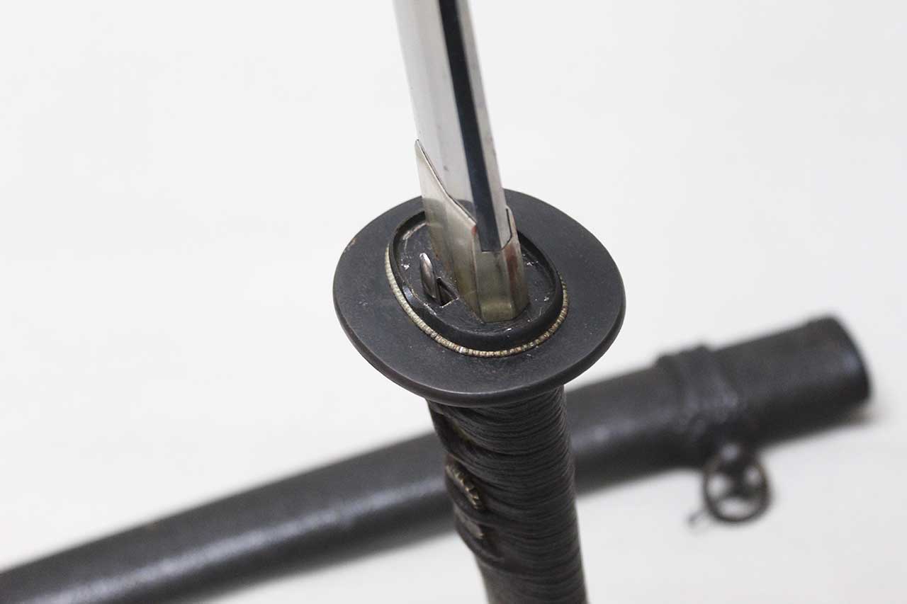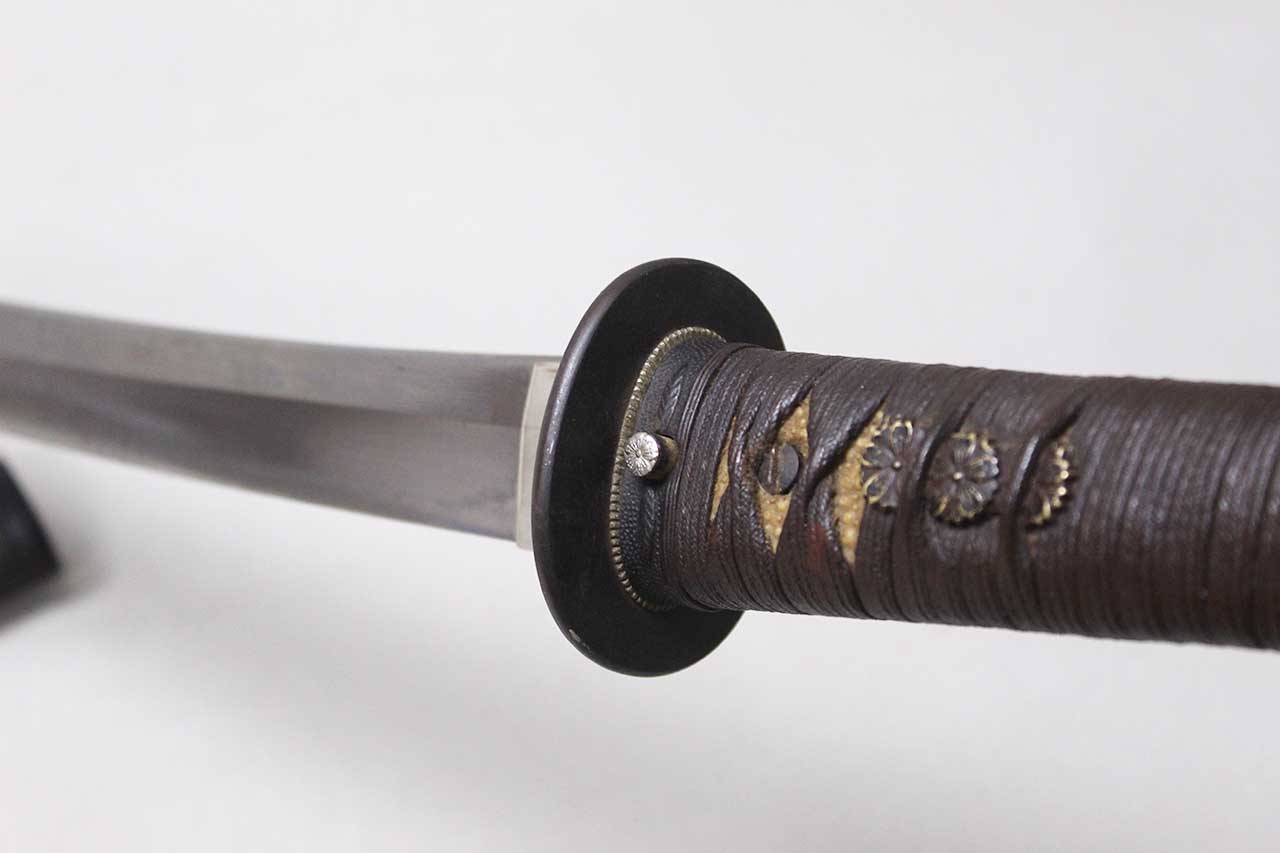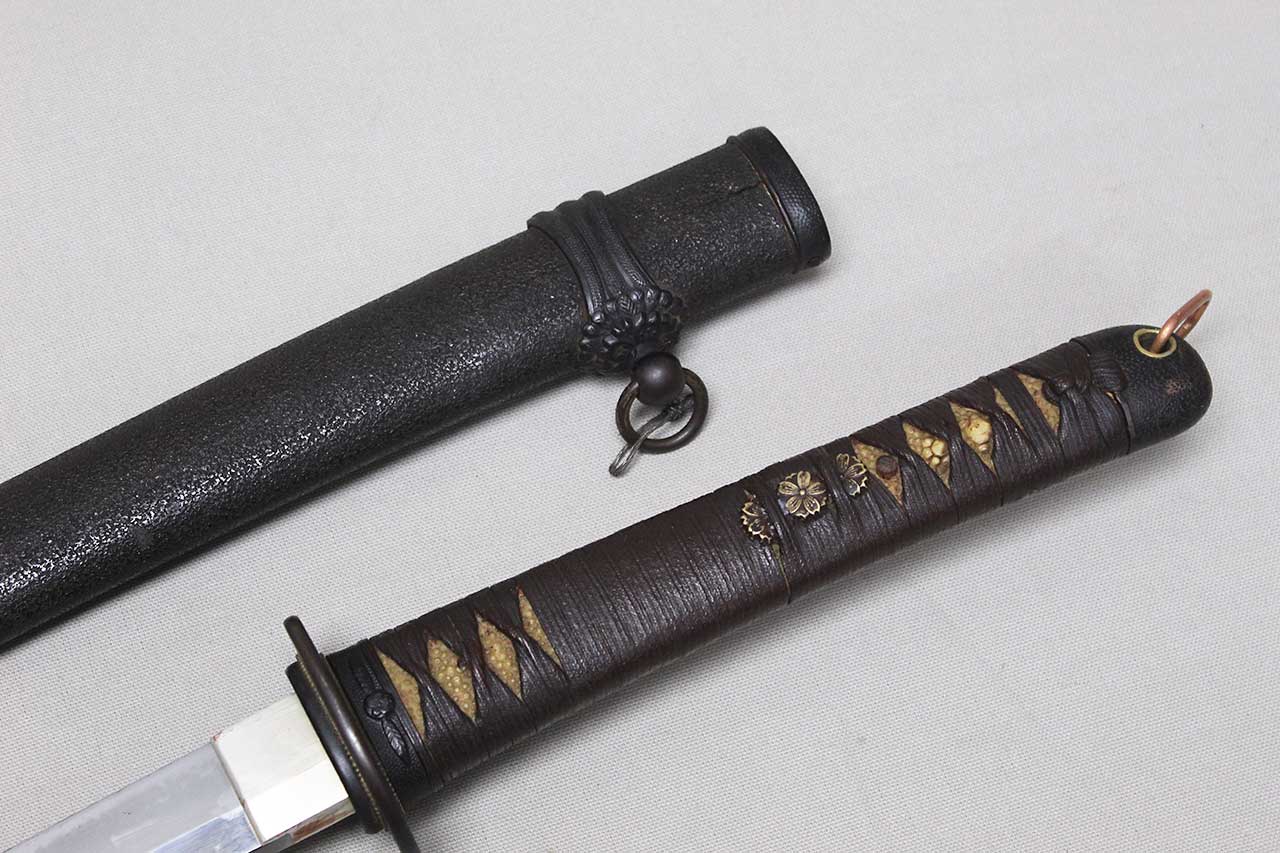Additional Notes: The late-war 1944 Japanese Army officer sword, known as the Shin-Guntō, was introduced toward the end of WW2. Due to material shortages, these swords featured blackened iron fittings instead of brass, which was needed for the war effort. The design retained traditional elements but was simplified for mass production. The late-war models had plain blackened brass cherry blossom menuki (grip decorations) and a steel kashira (end cap). These swords were still functional but lacked some of the craftsmanship of earlier models.