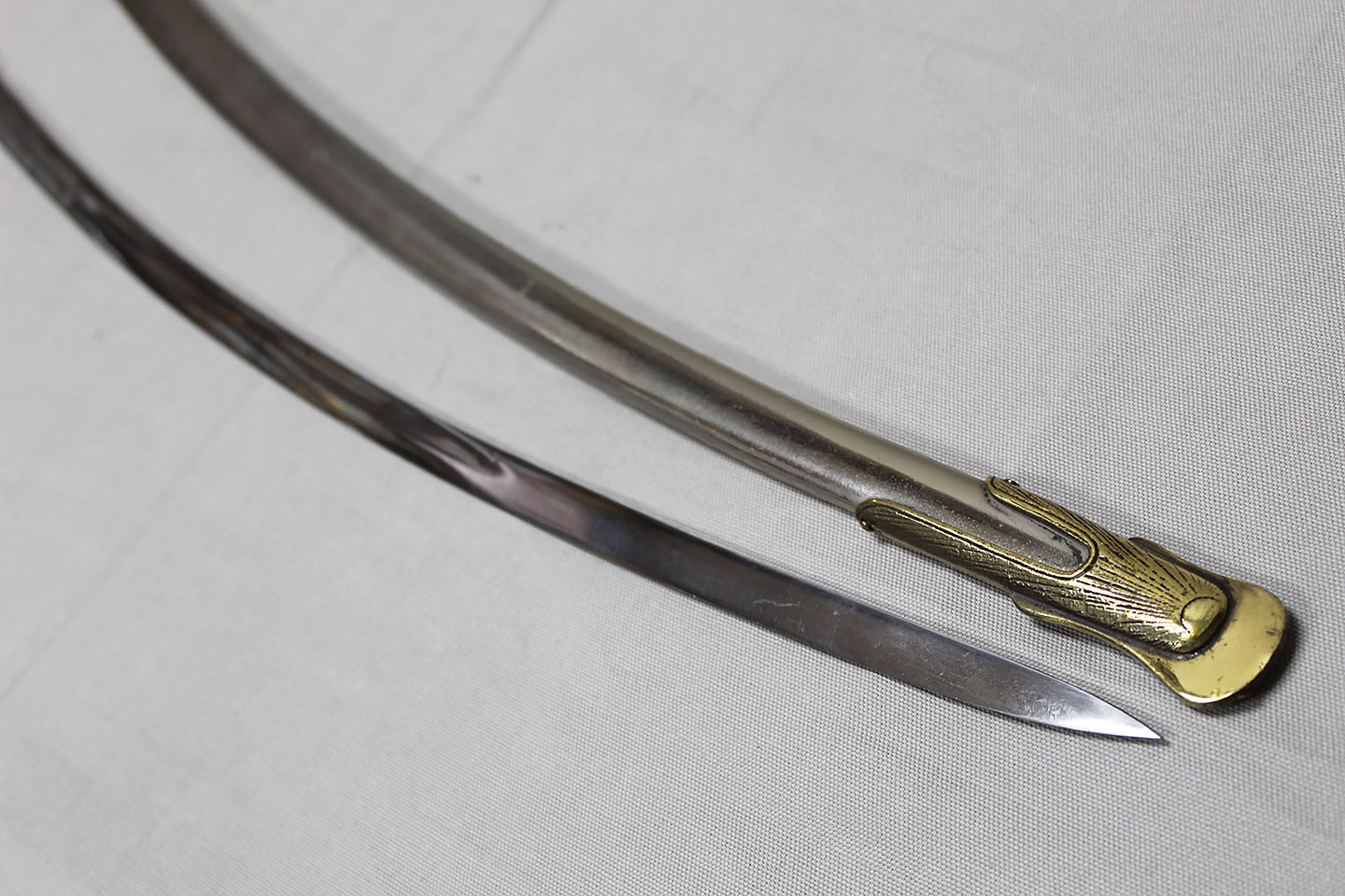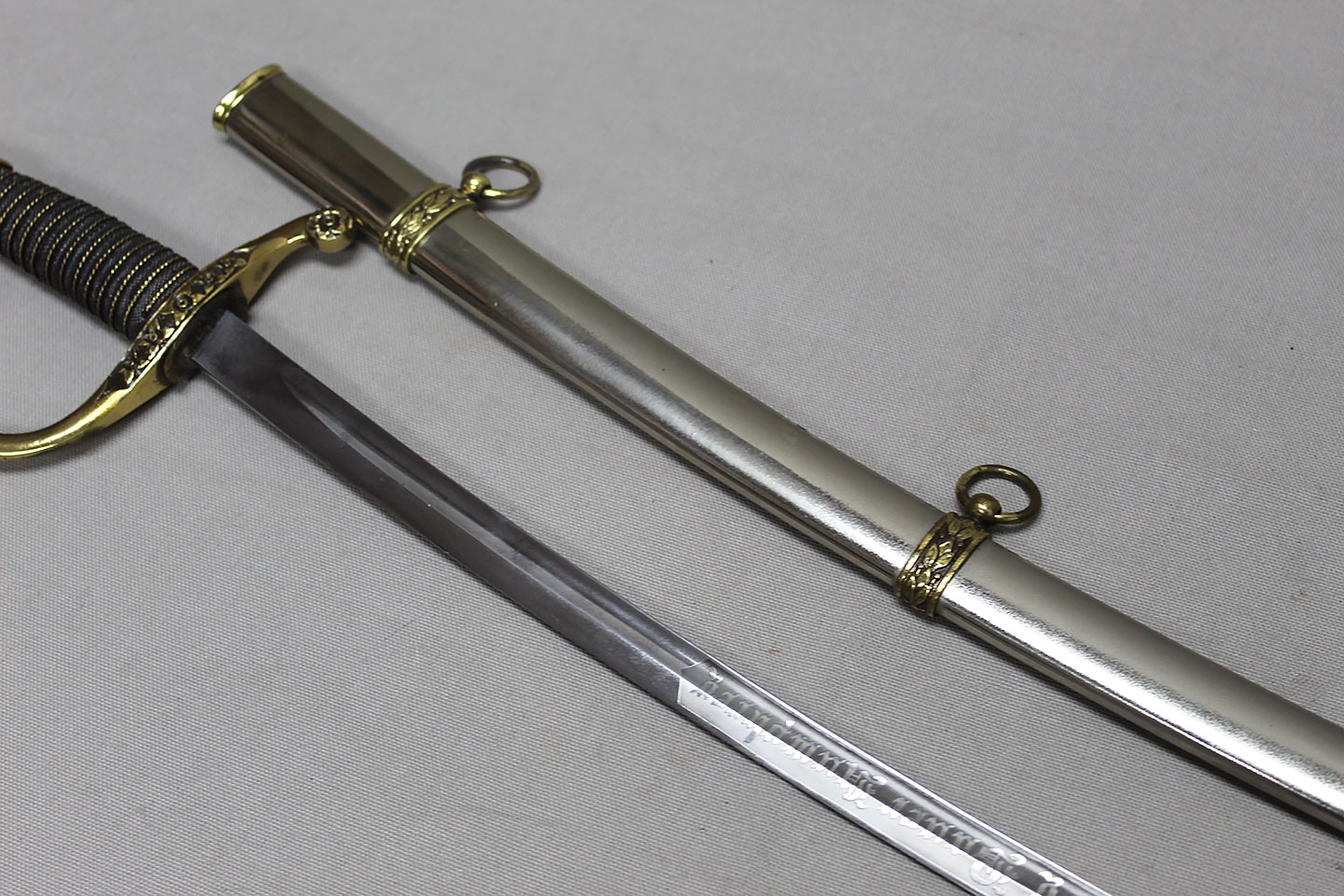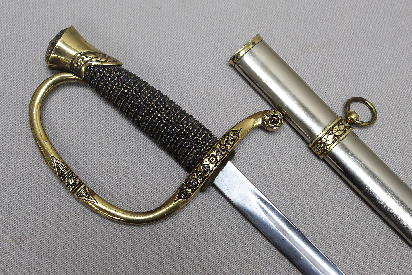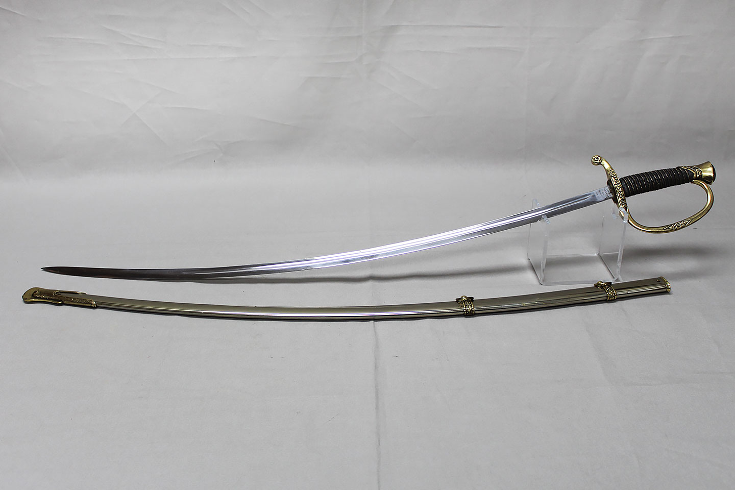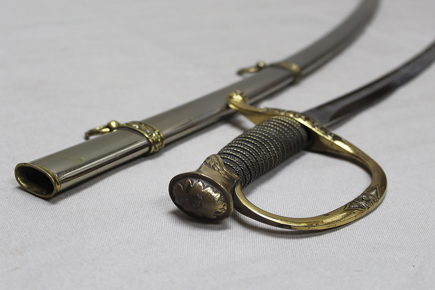 US M-1872 Artillery Officers Presentation Grade Sword. Marker marked on blade ricasso “Oak Hall Clothing Co., Boston Mass”. Presentation named to individual on one side on blade in dedication panel. Overall very good condition presentation grade sword.