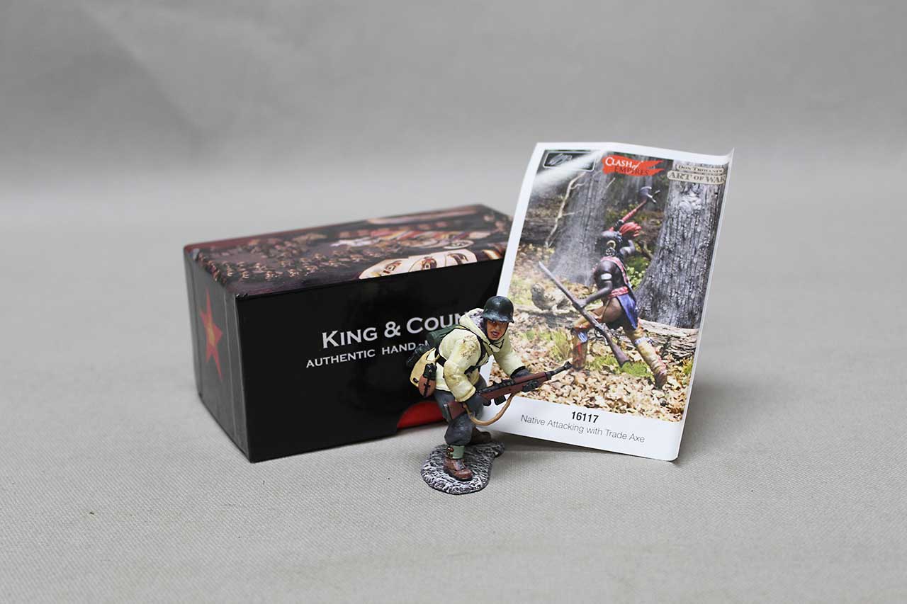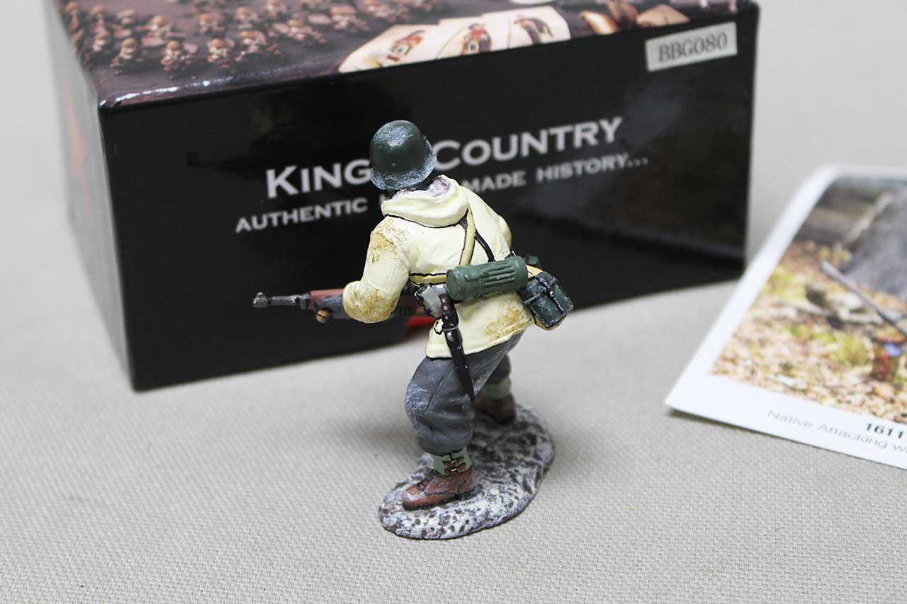 King and Country’s 2013 Bastogne series Toy Soldier in Box. BBG080. WW2 German soldier “Standing Ready with Rifle”. Release date October 2013, Retired date July 2018. Good condition in box.