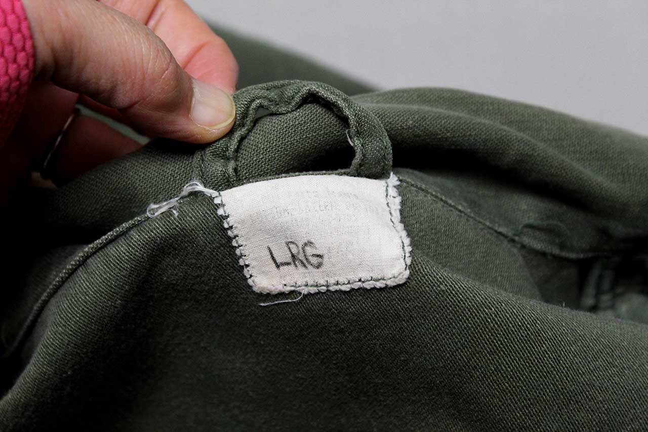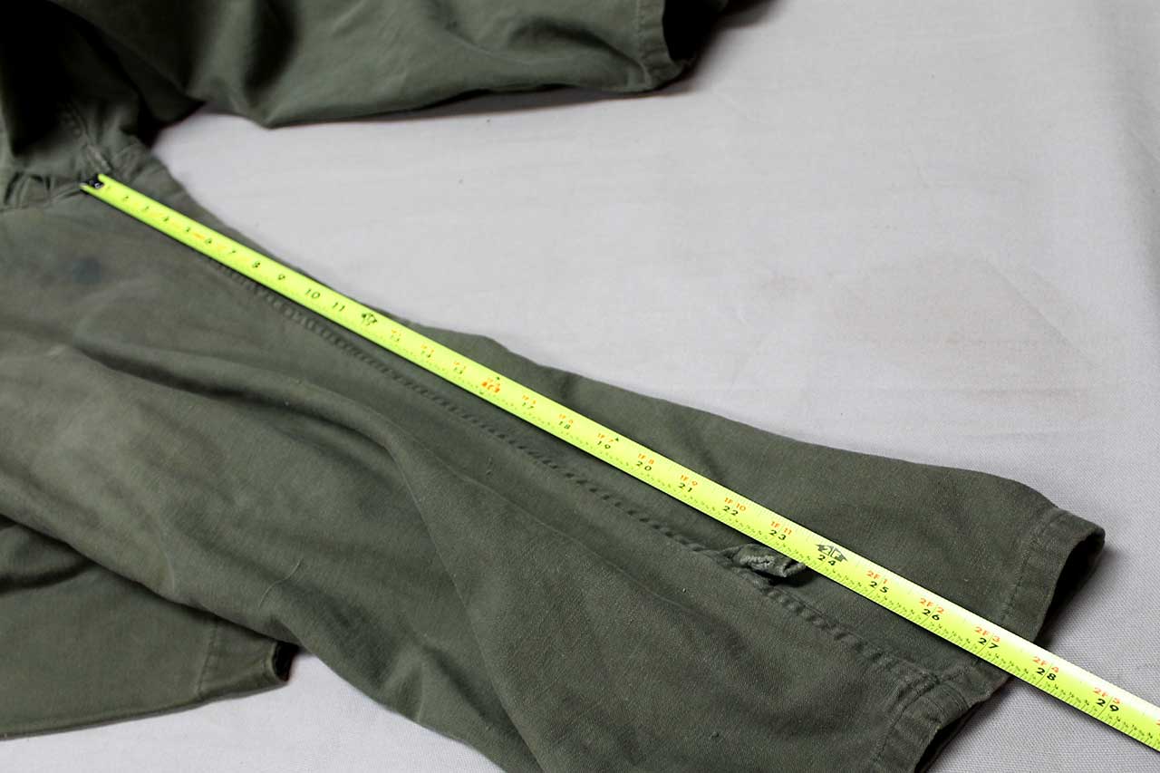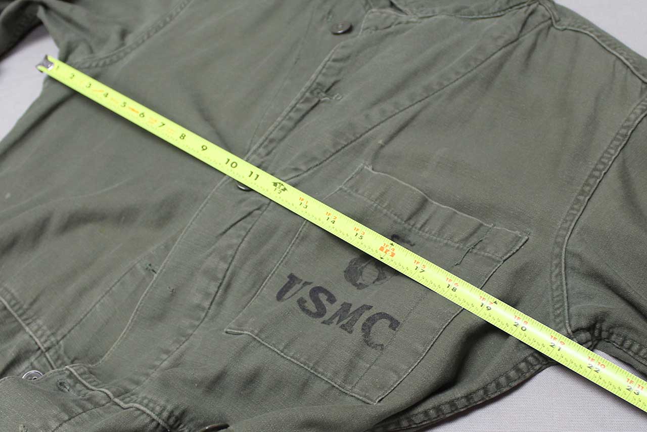 United States Marine Corps (USMC) One-Piece Coverall. Printed EGA on pocket area. Not quite sure what this one was for, some type of mechanic or work uniform. Contract tag washed out, however, written in pen size Large. Also, not sure about material, appears to be most likely some type of cotton or cotton blend. Most likely 1950s-1960 era. Worn and used condition.