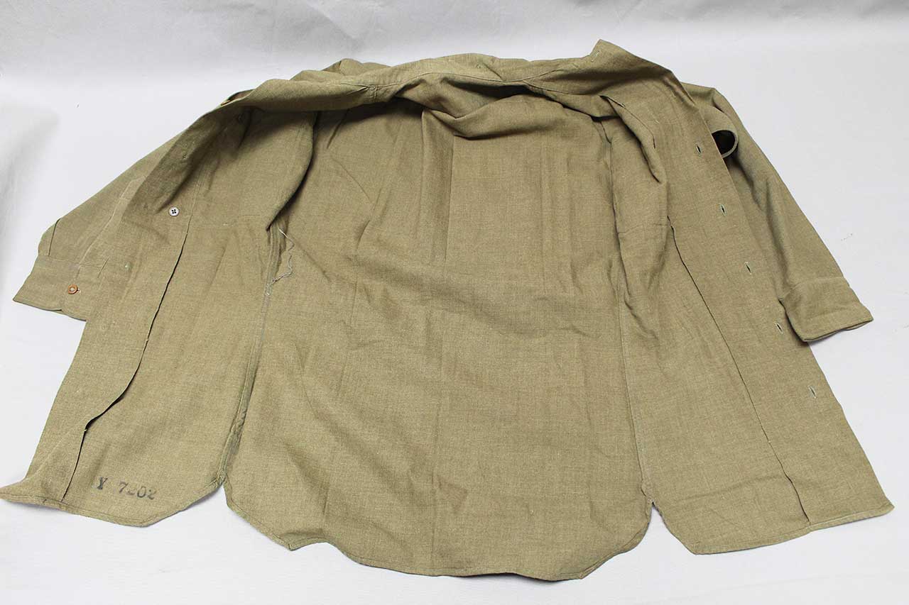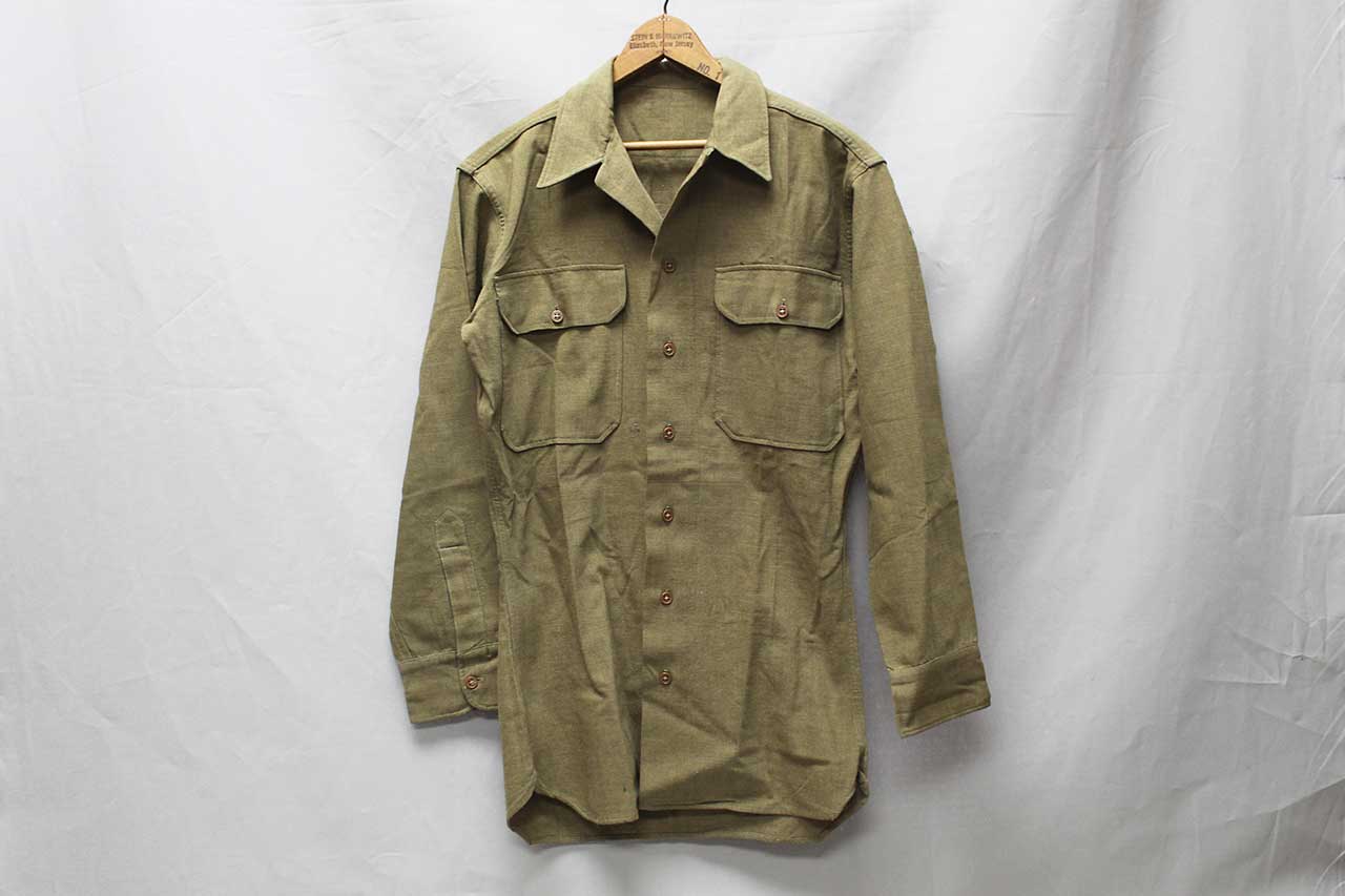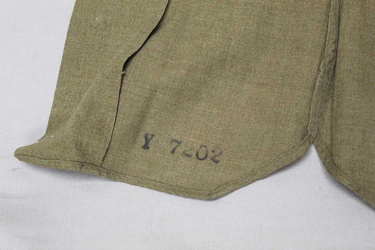 United States WW2 Army Wool Shirt. Has military laundry mark on lower interior area that appears to be: Y 7202. Worn condition.