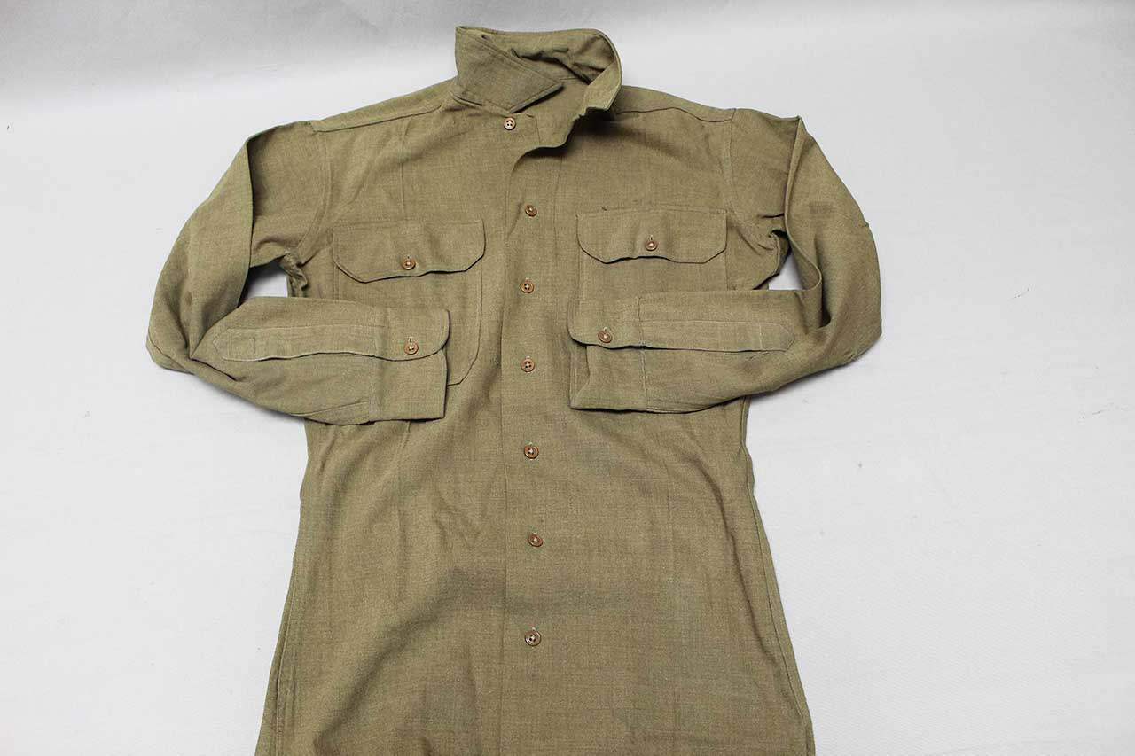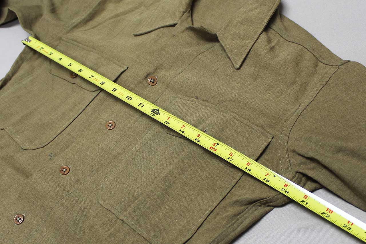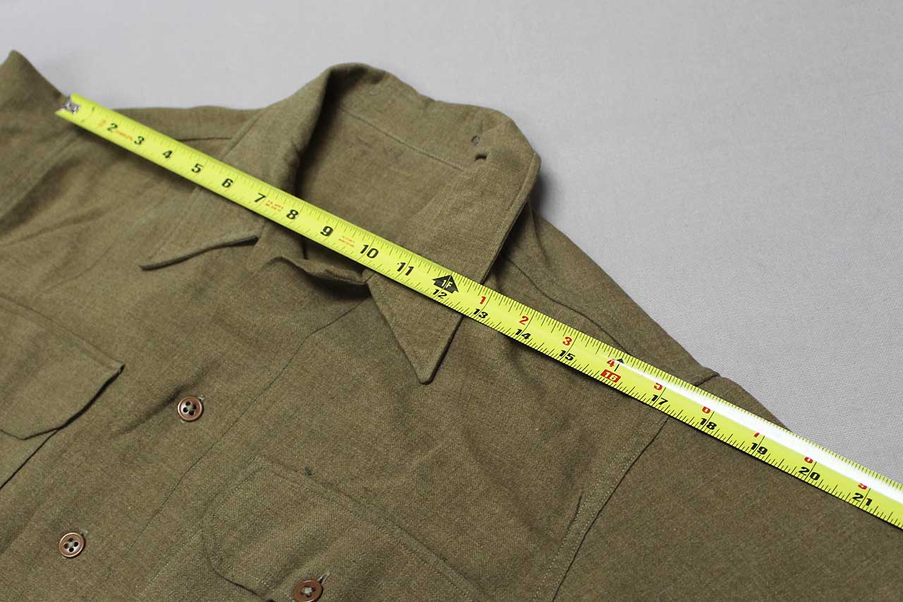 United States WW2 Army Wool Shirt. Has military laundry mark on lower interior area that appears to be: Y 7202. Worn condition.