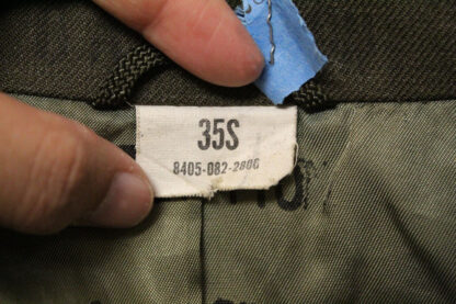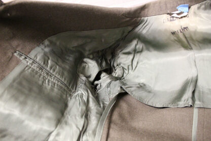 USMC Service Tunic (Alpha Green). Tag is contract dated 1970 (Vietnam era) and size marked 35S. Has Corporal cloth sleeve rank insignia and nice set of collar EGAs. Named on interior near neck area. Still has cloth belt as well. Overall good worn and used condition.