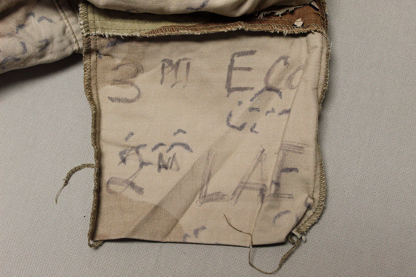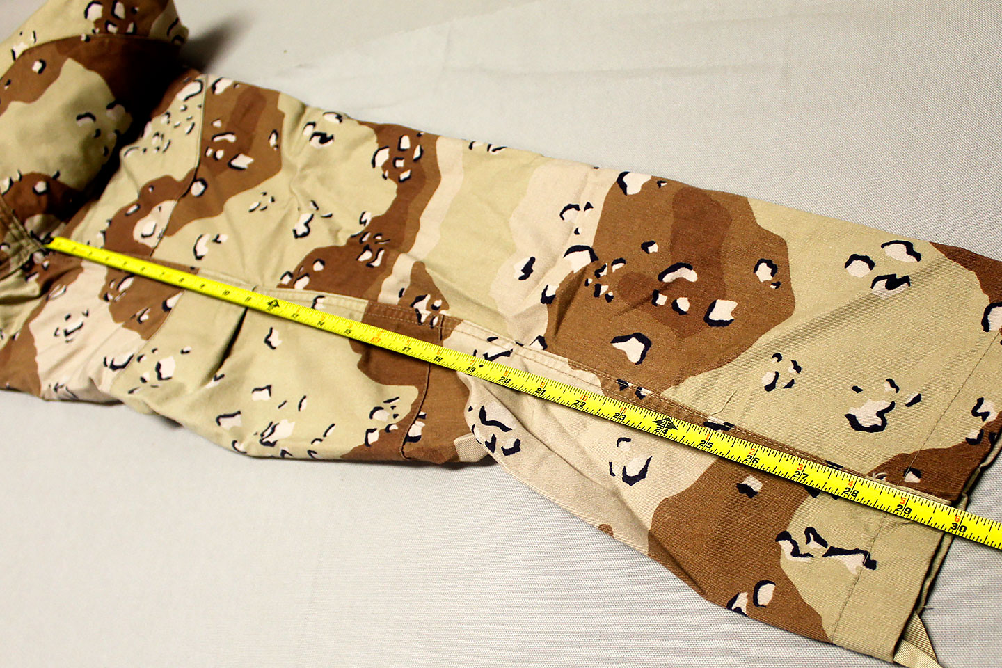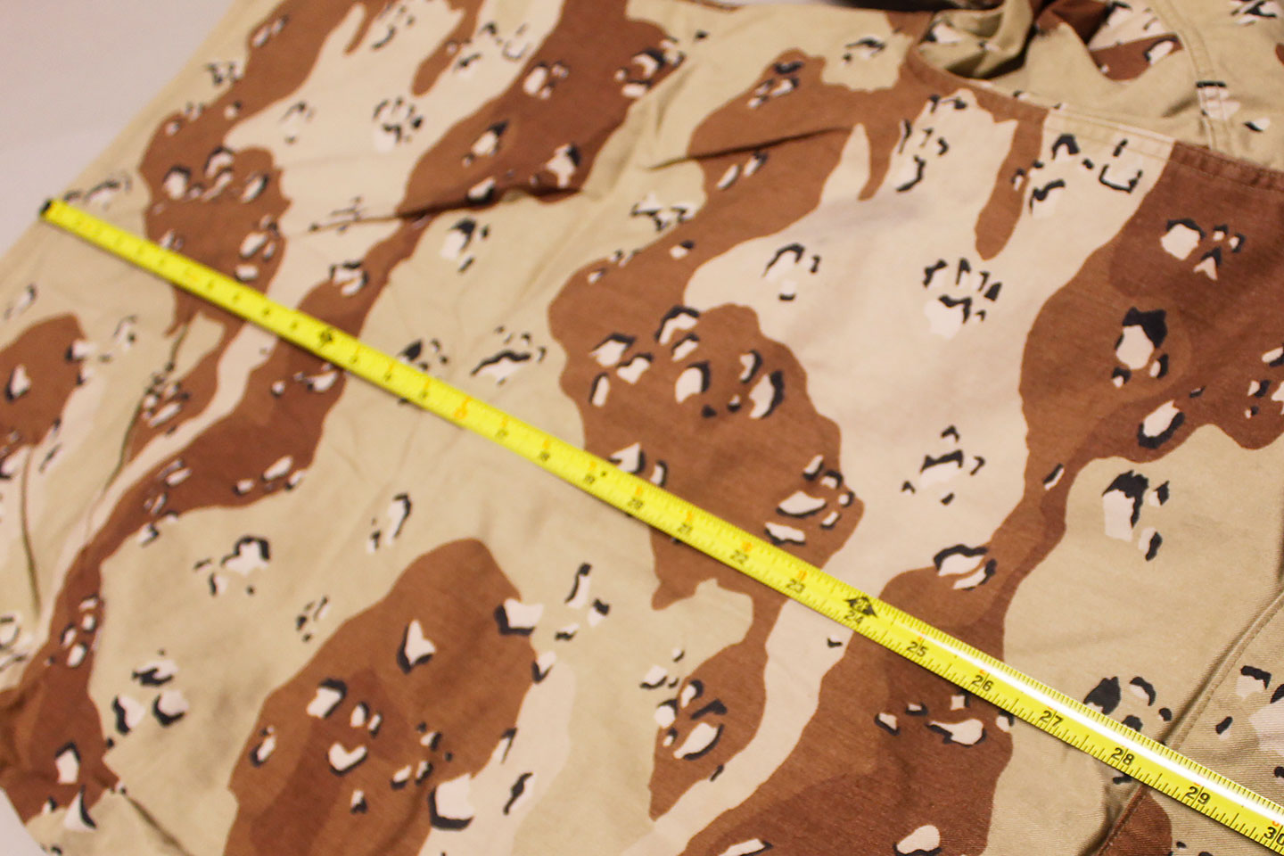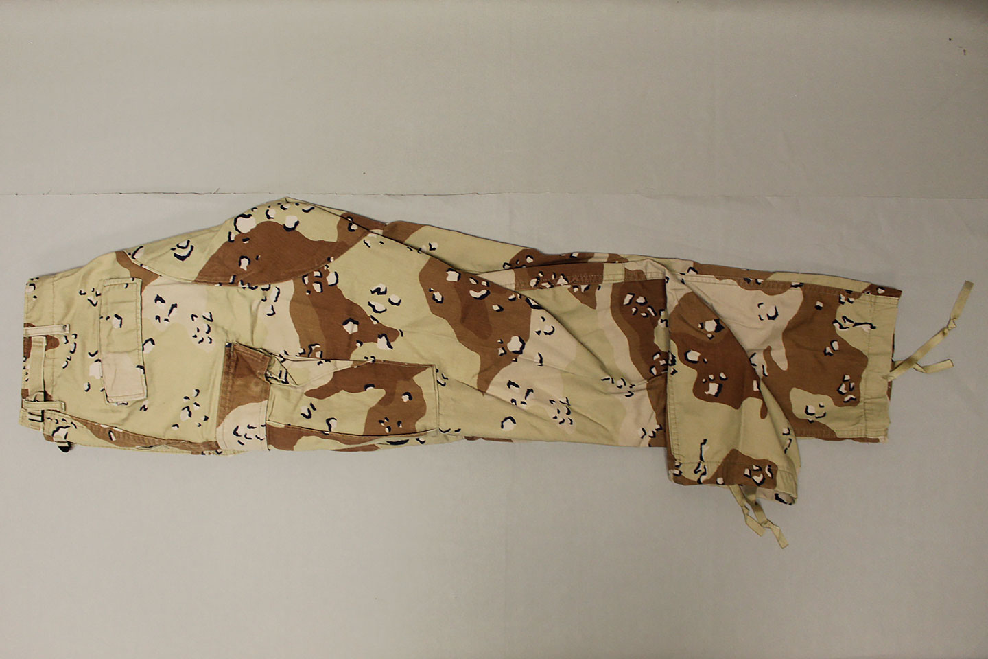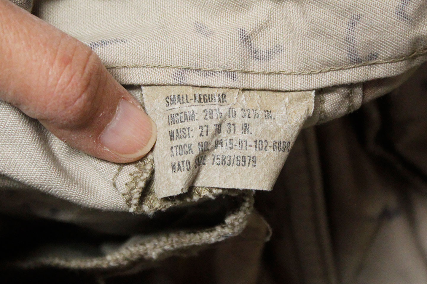 U.S. Army 1980s “Chocolate Chip” combat jacket and pants. Six Color Desert Camouflage. Tag very faded and bit washed out and hard to make out, however, appears to be a Small size. Worn and used condition.